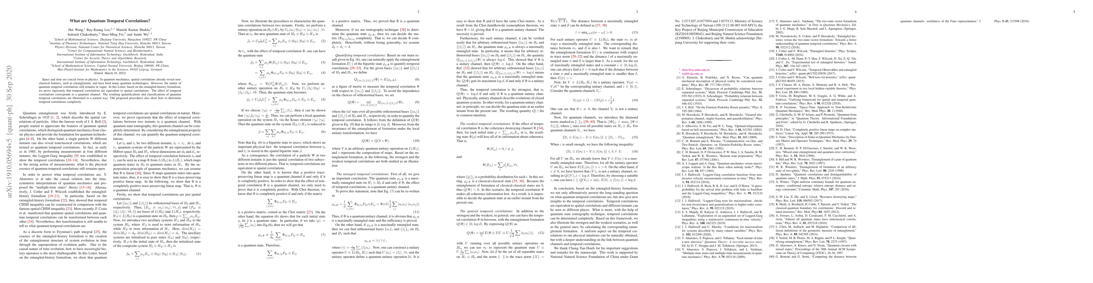 This paper demonstrates that temporal correlations in quantum mechanics are fundamentally equivalent to spatial correlations, revealing them as effects corresponding to quantum channels. The study proposes rigorous methods for quantifying and classifying these correlations, and outlines a procedure for their complete determination.