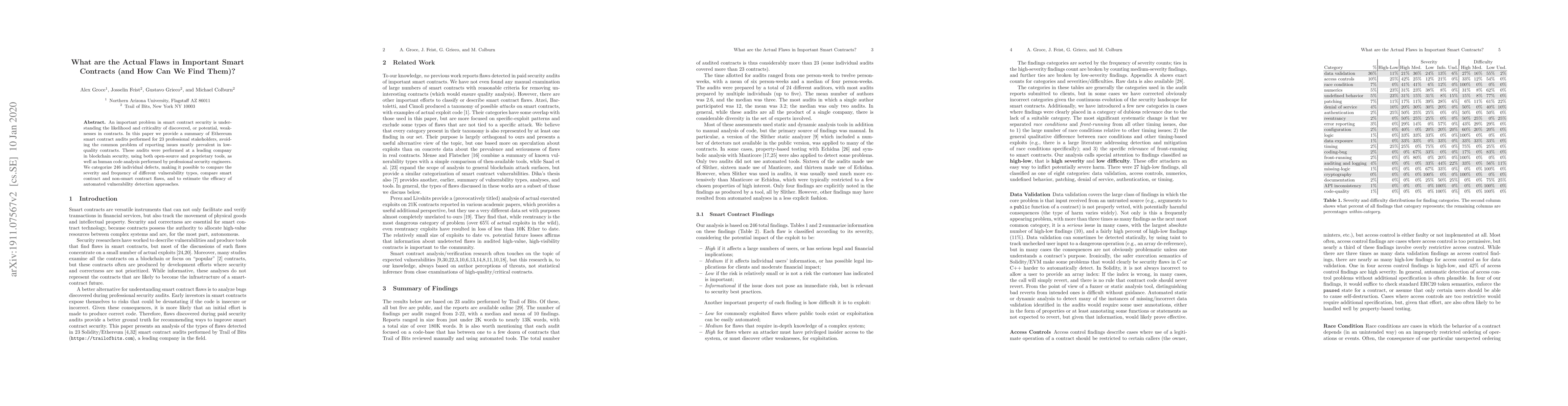 This paper presents an analysis of 23 Ethereum smart contract audits, identifying and categorizing 246 individual defects. It compares vulnerability types, smart contract vs non-contract flaws, and assesses automated detection tools' effectiveness.