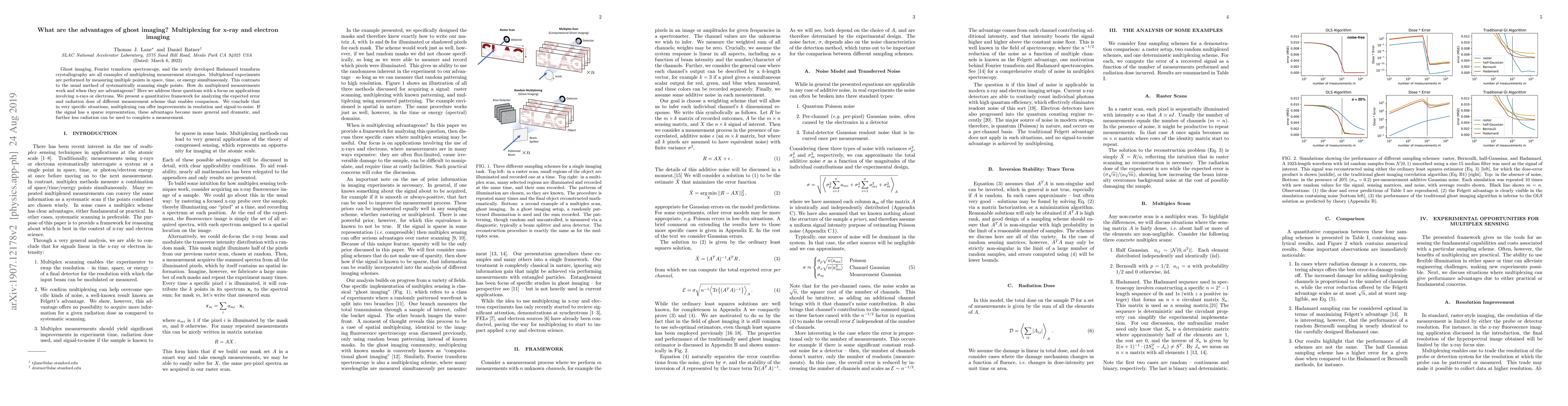 Ghost imaging, Fourier transform spectroscopy, and the newly developed Hadamard transform crystallography are all examples of multiplexing measurement strategies. Multiplexed experiments are performed by measuring multiple points in space, time, or energy simultaneously. This contrasts to the usual method of systematically scanning single points. How do multiplexed measurements work and when they are advantageous? Here we address these questions with a focus on applications involving x-rays or electrons. We present a quantitative framework for analyzing the expected error and radiation dose of different measurement scheme that enables comparison. We conclude that in very specific situations, multiplexing can offer improvements in resolution and signal-to-noise. If the signal has a sparse representation, these advantages become more general and dramatic, and further less radiation can be used to complete a measurement.