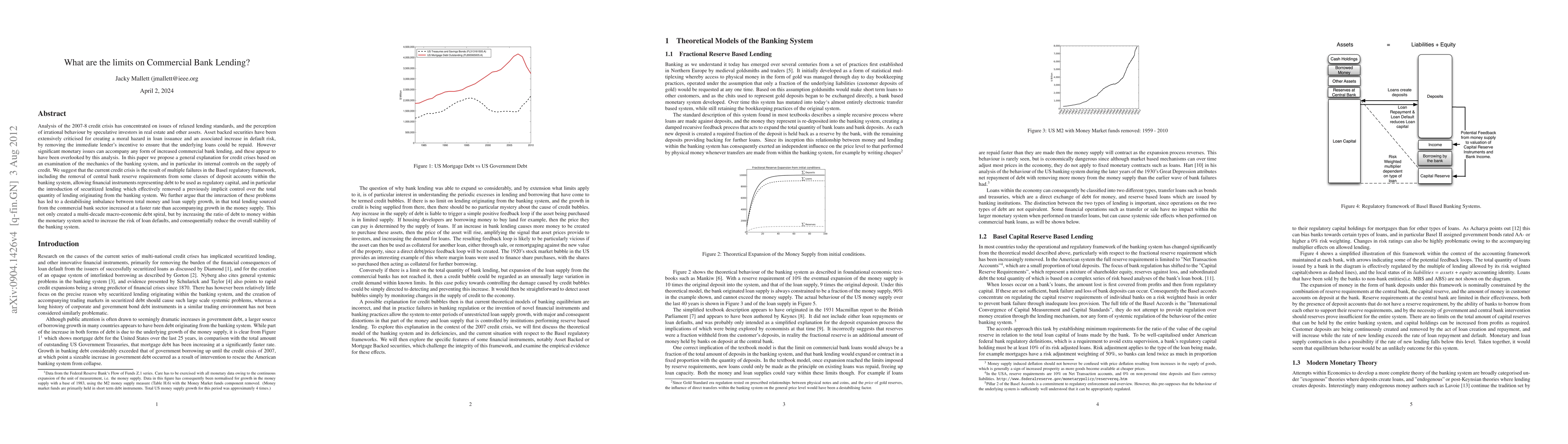 Analysis of the 2007-8 credit crisis has concentrated on issues of relaxed lending standards, and the perception of irrational behaviour by speculative investors in real estate and other assets. Asset backed securities have been extensively criticised for creating a moral hazard in loan issuance and an associated increase in default risk, by removing the immediate lender's incentive to ensure that the underlying loans could be repaid. However significant monetary issues can accompany any form of increased commercial bank lending, and these appear to have been overlooked by this analysis. In this paper we propose a general explanation for credit crises based on an examination of the mechanics of the banking system, and in particular its internal controls on the supply of credit. We suggest that the current credit crisis is the result of multiple failures in the Basel regulatory framework, including the removal of central bank reserve requirements from some classes of deposit accounts within the banking system, allowing financial instruments representing debt to be used as regulatory capital, and in particular the introduction of securitized lending which effectively removed a previously implicit control over the total quantity of lending originating from the banking system. We further argue that the interaction of these problems has led to a destabilising imbalance between total money and loan supply growth, in that total lending sourced from the commercial bank sector increased at a faster rate than accompanying growth in the money supply. This not only created a multi-decade macro-economic debt spiral, but by increasing the ratio of debt to money within the monetary system acted to increase the risk of loan defaults, and consequentially reduce the overall stability of the banking system.