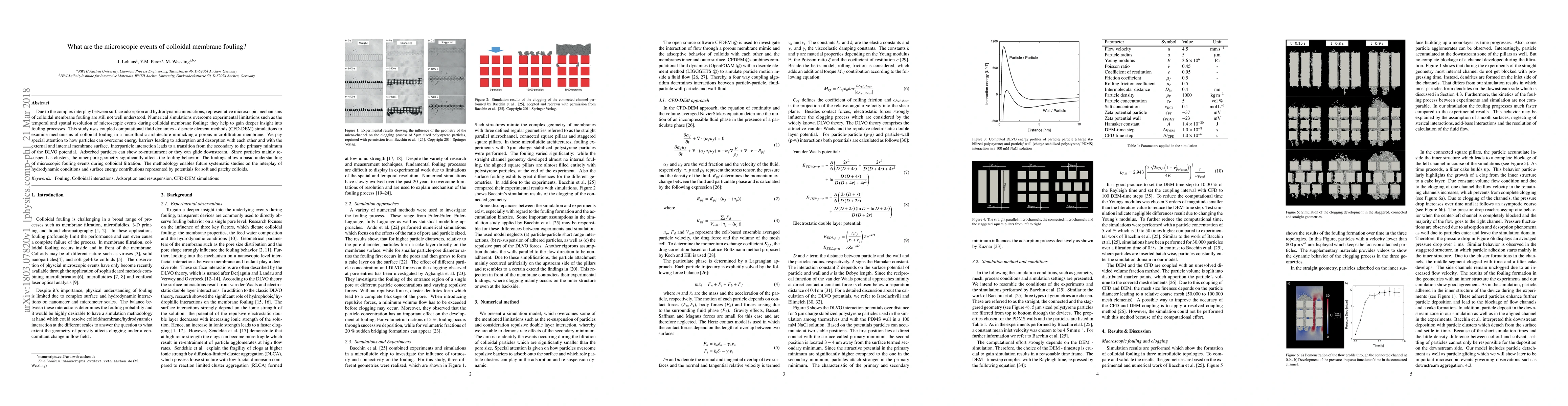This study uses CFD-DEM simulations to explore microscopic mechanisms of colloidal membrane fouling, revealing how particles overcome energy barriers and transition between adsorption states, significantly influenced by pore geometry and hydrodynamic conditions. The findings provide insight into the fundamental fouling processes in colloidal filtration.