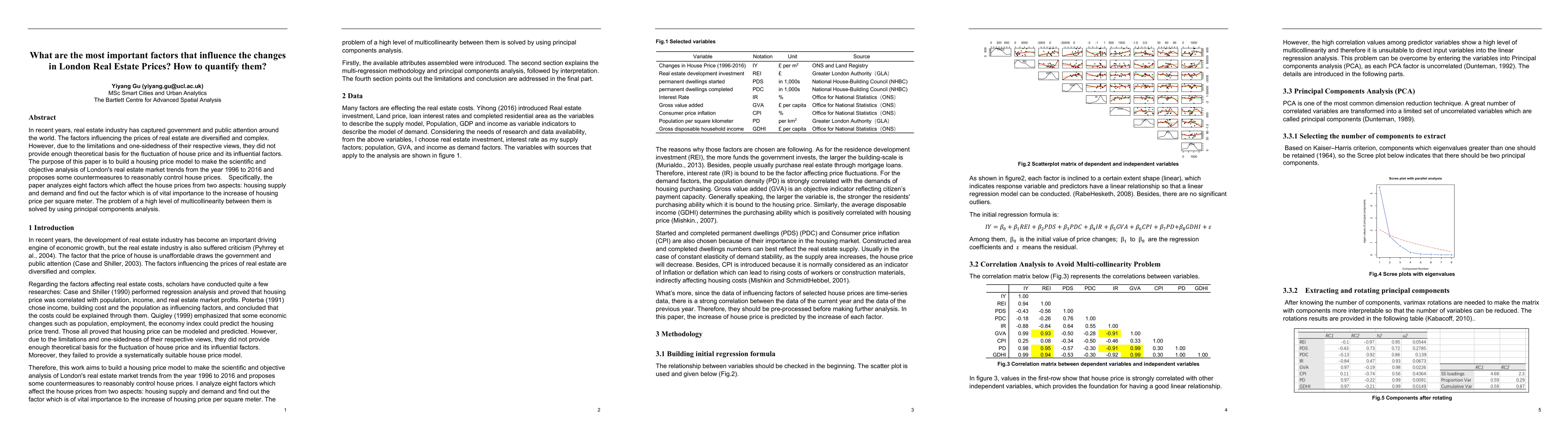 In recent years, real estate industry has captured government and public attention around the world. The factors influencing the prices of real estate are diversified and complex. However, due to the limitations and one-sidedness of their respective views, they did not provide enough theoretical basis for the fluctuation of house price and its influential factors. The purpose of this paper is to build a housing price model to make the scientific and objective analysis of London's real estate market trends from the year 1996 to 2016 and proposes some countermeasures to reasonably control house prices. Specifically, the paper analyzes eight factors which affect the house prices from two aspects: housing supply and demand and find out the factor which is of vital importance to the increase of housing price per square meter. The problem of a high level of multicollinearity between them is solved by using principal components analysis.