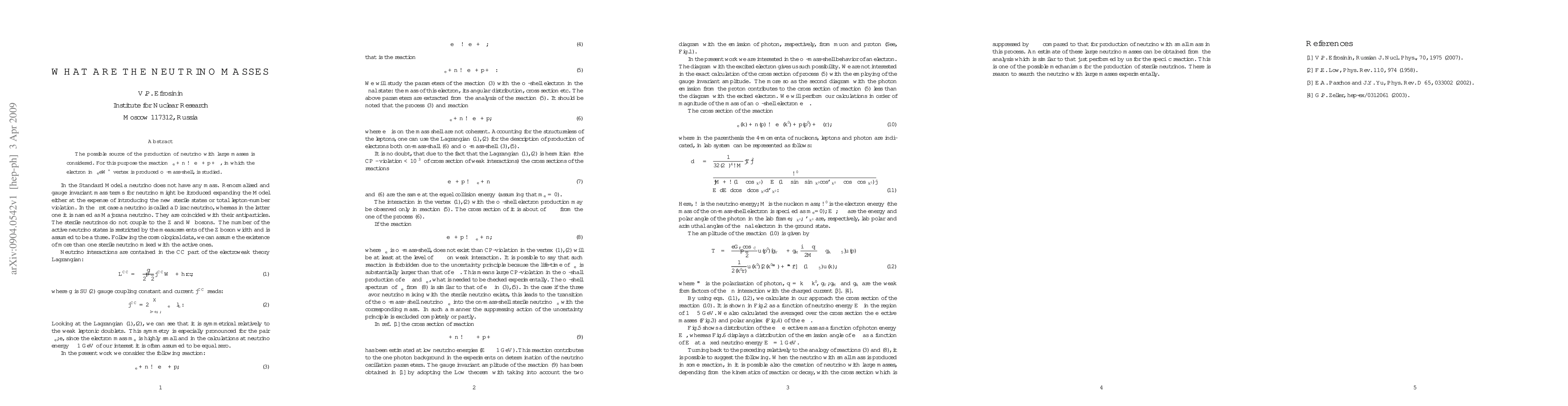 The possible source of the production of neutrino with large masses is considered. For this purpose the reaction nu+n to e+p+gamma, in which the electron in neW+ vertex is produced off-mass-shell, is studied.