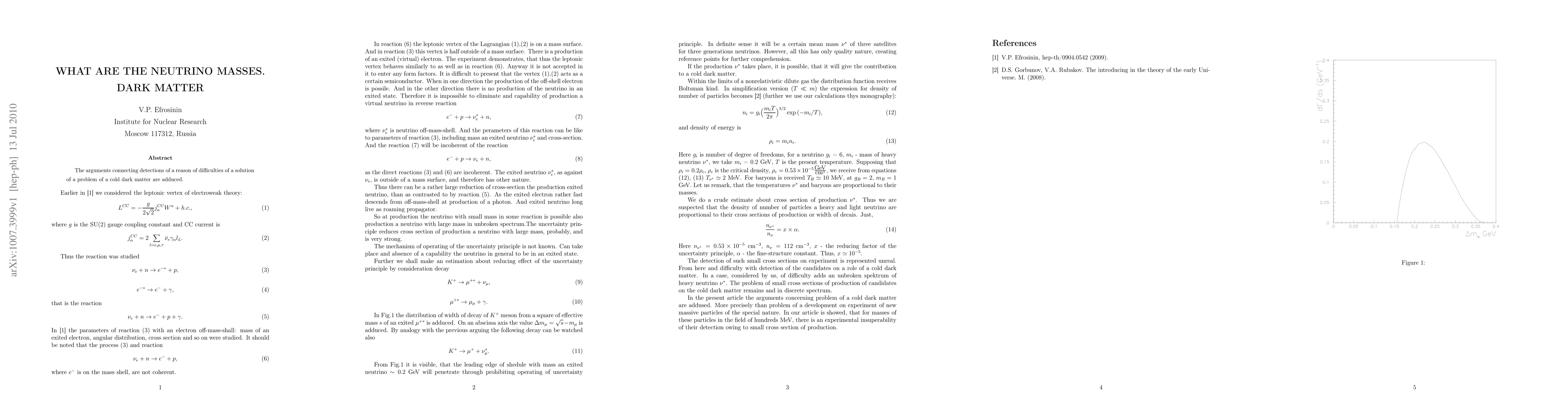 The arguments connecting detections of a reason of difficulties of a solution of a problem of a cold dark matter are adduced.