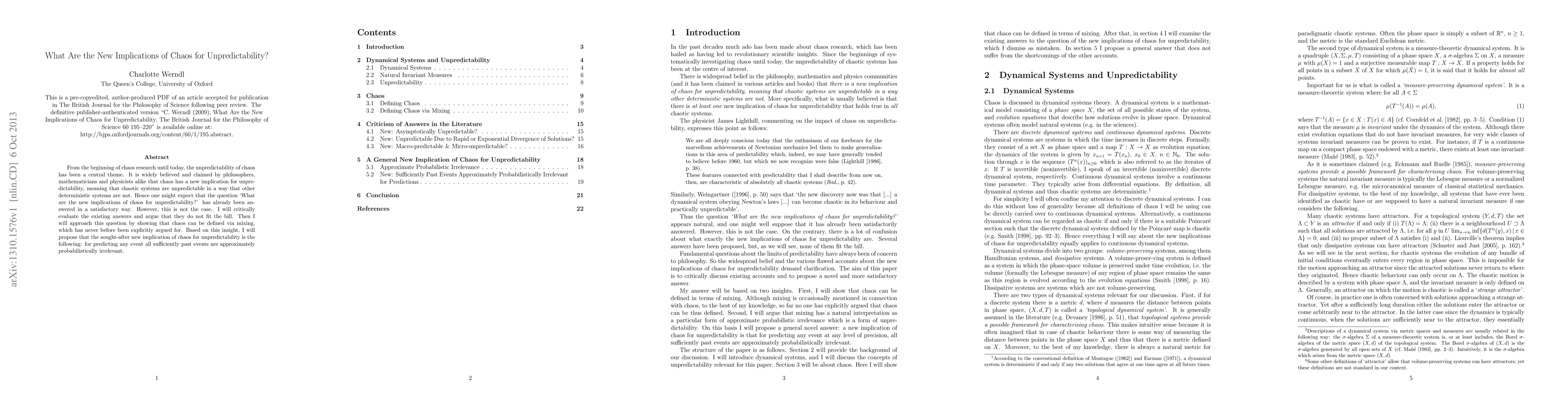 This paper critically evaluates existing views on chaos and unpredictability, arguing that current interpretations are insufficient. It proposes that chaos, defined via mixing, implies that past events become probabilistically irrelevant for predicting future events in chaotic systems.