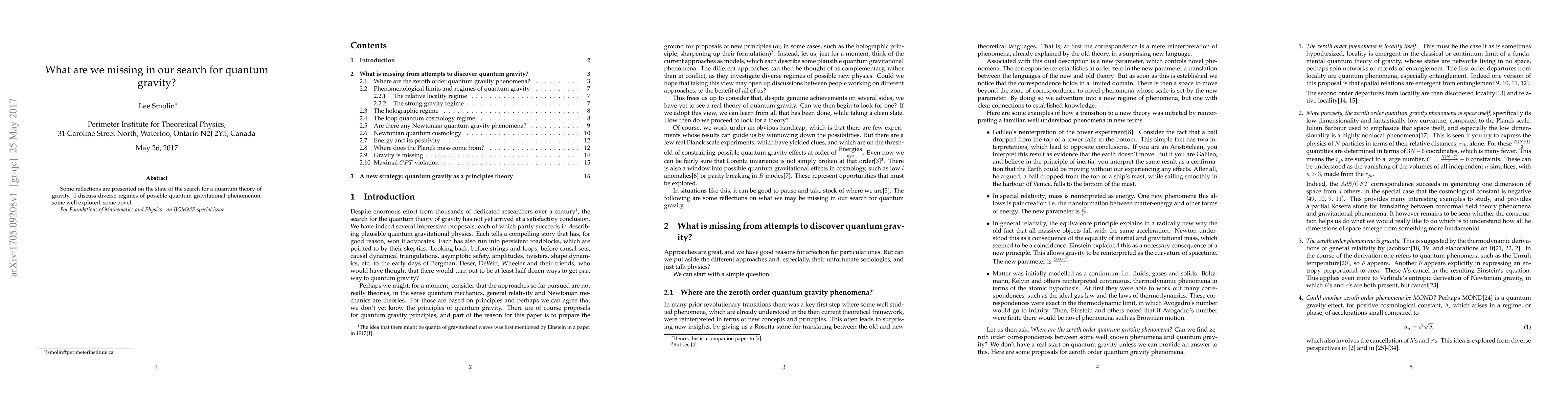 Some reflections are presented on the state of the search for a quantum theory of gravity. I discuss diverse regimes of possible quantum gravitational phenomenon, some well explored, some novel.