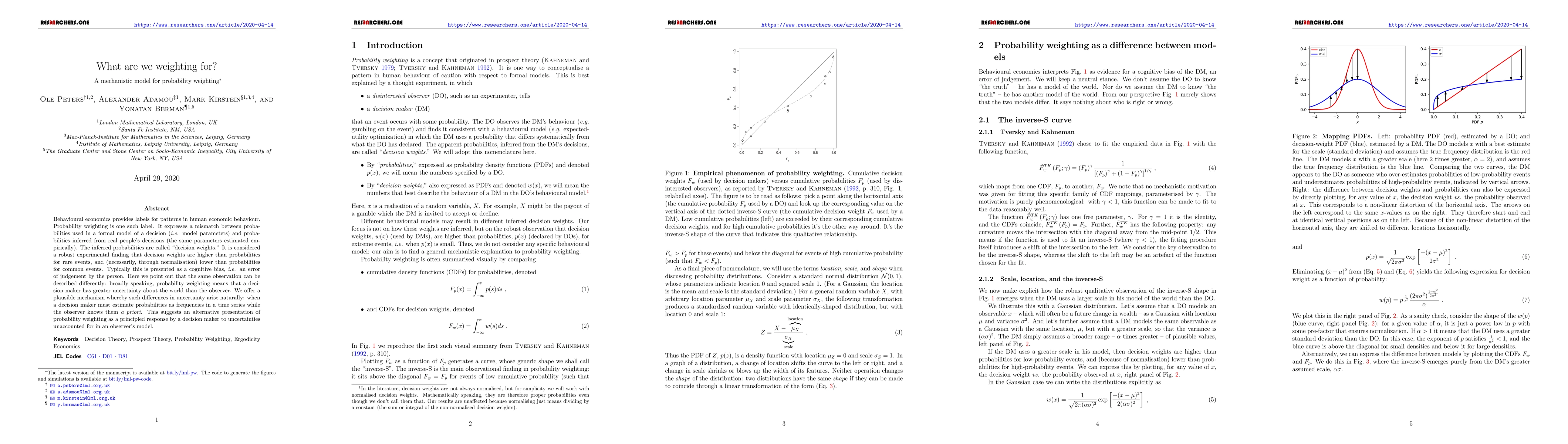 Researchers propose a new explanation for probability weighting, suggesting that decision-makers have greater uncertainty about the world than observers, and offer a mechanism to explain this difference in uncertainty.