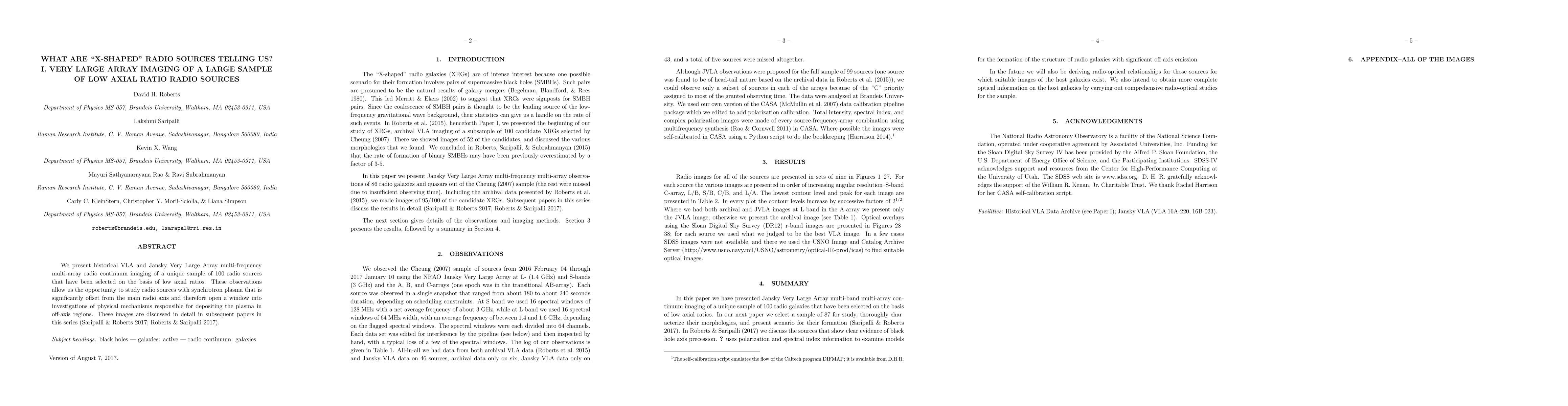 This study uses VLA imaging to analyze 100 low axial ratio radio sources, revealing synchrotron plasma offset from the main radio axis, which aids in understanding the physical mechanisms behind off-axis plasma deposition. Detailed discussions follow in subsequent papers.