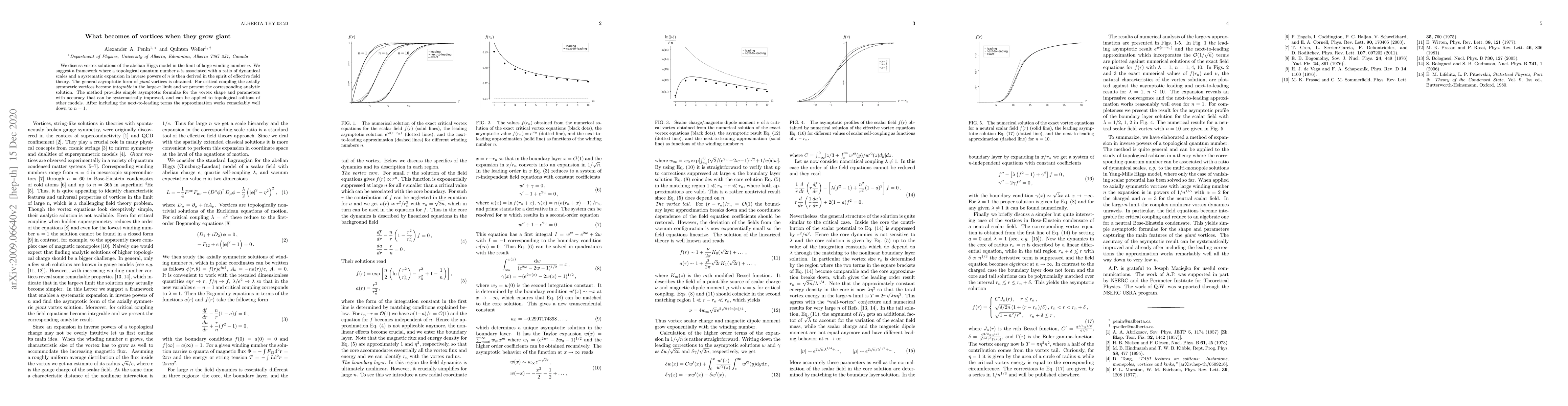 The research employs a systematic expansion in inverse powers of a topological quantum number n, derived from the abelian Higgs model in the large-winding number limit. It suggests a framework for associating n with a ratio of dynamical scales and provides an asymptotic form for giant vortices.