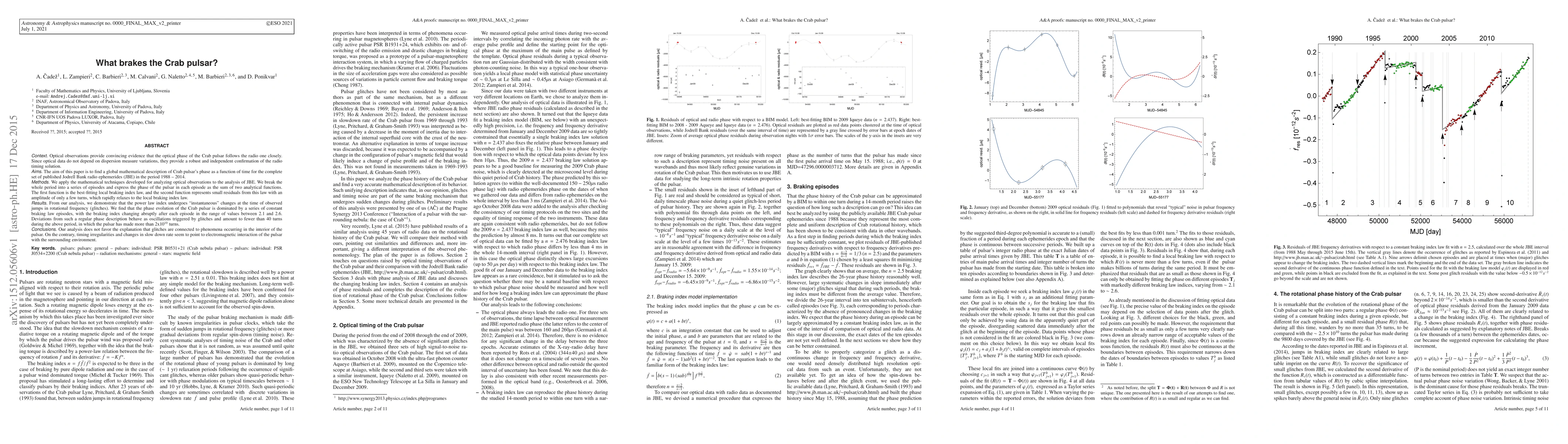 Research on the Crab pulsar reveals that its phase evolution is dominated by regular braking law episodes with abrupt changes in braking index after each episode, suggesting electromagnetic interactions with its environment.
