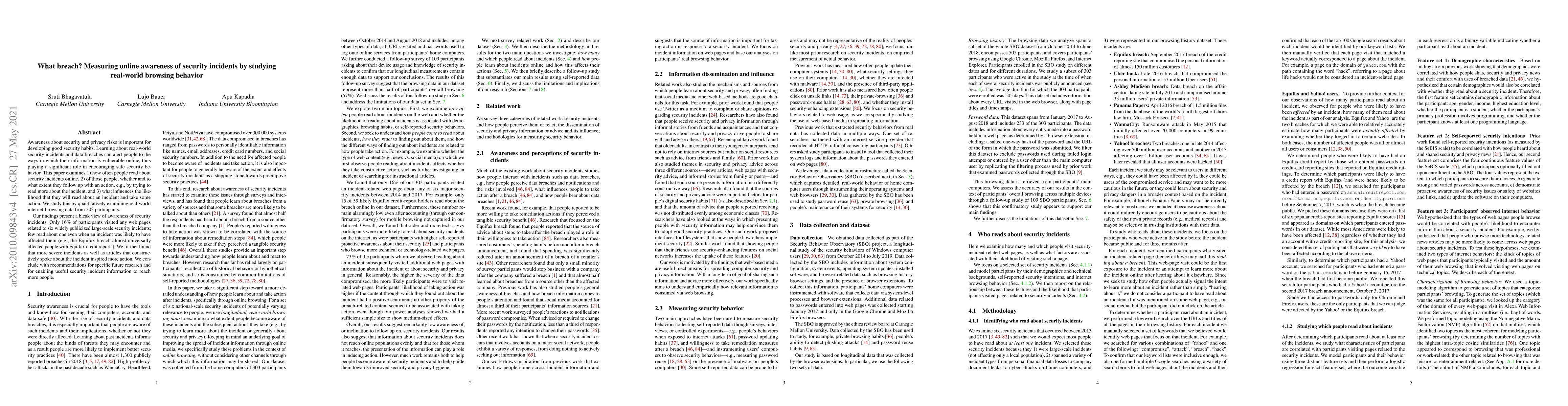 Awareness about security and privacy risks is important for developing good security habits. Learning about real-world security incidents and data breaches can alert people to the ways in which their information is vulnerable online, thus playing a significant role in encouraging safe security behavior. This paper examines 1) how often people read about security incidents online, 2) of those people, whether and to what extent they follow up with an action, e.g., by trying to read more about the incident, and 3) what influences the likelihood that they will read about an incident and take some action. We study this by quantitatively examining real-world internet-browsing data from 303 participants. Our findings present a bleak view of awareness of security incidents. Only 16% of participants visited any web pages related to six widely publicized large-scale security incidents; few read about one even when an incident was likely to have affected them (e.g., the Equifax breach almost universally affected people with Equifax credit reports). We further found that more severe incidents as well as articles that constructively spoke about the incident inspired more action. We conclude with recommendations for specific future research and for enabling useful security incident information to reach more people.