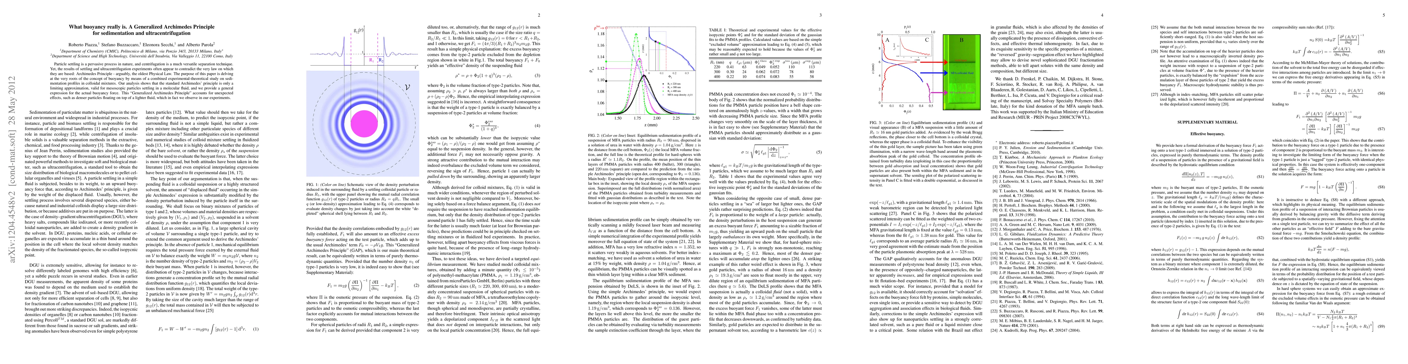 Particle settling is a pervasive process in nature, and centrifugation is a much versatile separation technique. Yet, the results of settling and ultracentrifugation experiments often appear to contradict the very law on which they are based: Archimedes Principle - arguably, the oldest Physical Law. The purpose of this paper is delving at the very roots of the concept of buoyancy by means of a combined experimental-theoretical study on sedimentation profiles in colloidal mixtures. Our analysis shows that the standard Archimedes' principle is only a limiting approximation, valid for mesoscopic particles settling in a molecular fluid, and we provide a general expression for the actual buoyancy force. This "Generalized Archimedes Principle" accounts for unexpected effects, such as denser particles floating on top of a lighter fluid, which in fact we observe in our experiments.