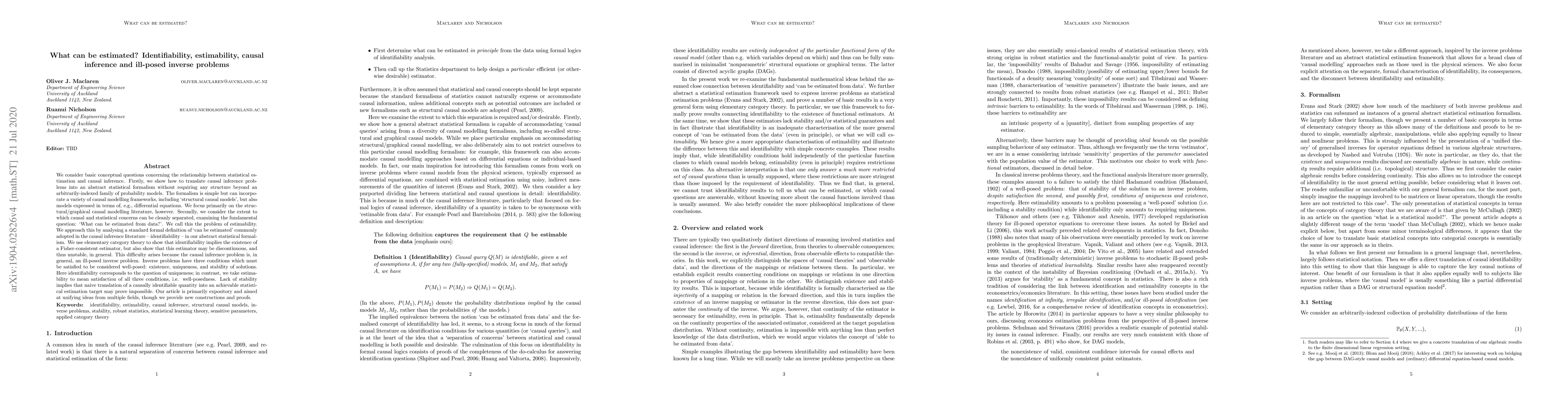 We consider basic conceptual questions concerning the relationship between statistical estimation and causal inference. Firstly, we show how to translate causal inference problems into an abstract statistical formalism without requiring any structure beyond an arbitrarily-indexed family of probability models. The formalism is simple but can incorporate a variety of causal modelling frameworks, including 'structural causal models', but also models expressed in terms of, e.g., differential equations. We focus primarily on the structural/graphical causal modelling literature, however. Secondly, we consider the extent to which causal and statistical concerns can be cleanly separated, examining the fundamental question: 'What can be estimated from data?'. We call this the problem of estimability. We approach this by analysing a standard formal definition of 'can be estimated' commonly adopted in the causal inference literature -- identifiability -- in our abstract statistical formalism. We use elementary category theory to show that identifiability implies the existence of a Fisher-consistent estimator, but also show that this estimator may be discontinuous, and thus unstable, in general. This difficulty arises because the causal inference problem is, in general, an ill-posed inverse problem. Inverse problems have three conditions which must be satisfied to be considered well-posed: existence, uniqueness, and stability of solutions. Here identifiability corresponds to the question of uniqueness; in contrast, we take estimability to mean satisfaction of all three conditions, i.e. well-posedness. Lack of stability implies that naive translation of a causally identifiable quantity into an achievable statistical estimation target may prove impossible. Our article is primarily expository and aimed at unifying ideas from multiple fields, though we provide new constructions and proofs.