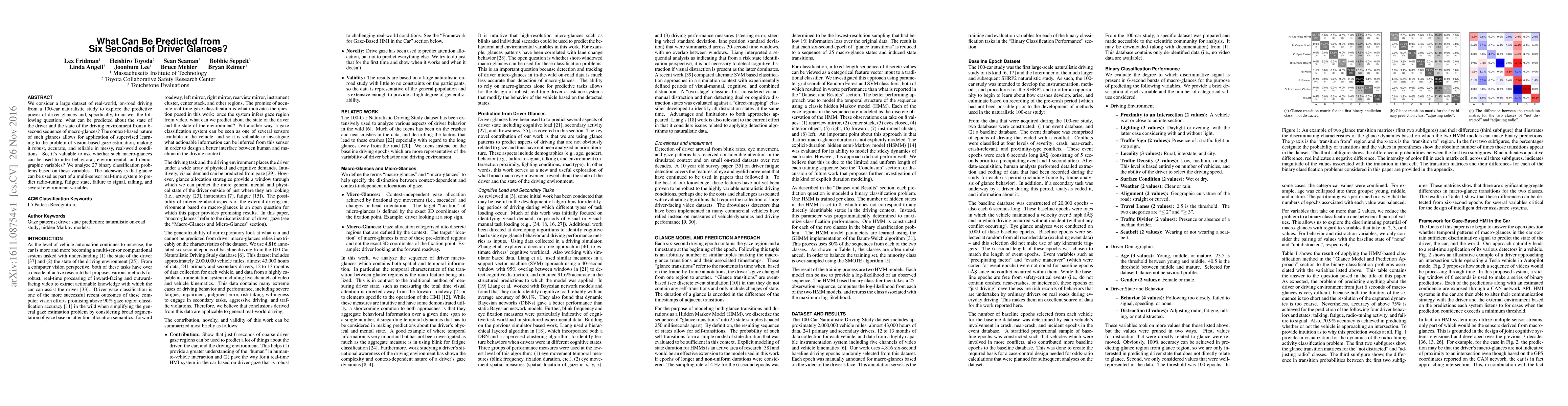 Research shows that 6-second driver glances can predict behavioral, environmental, and demographic variables such as radio-tuning and fatigue state with high accuracy.