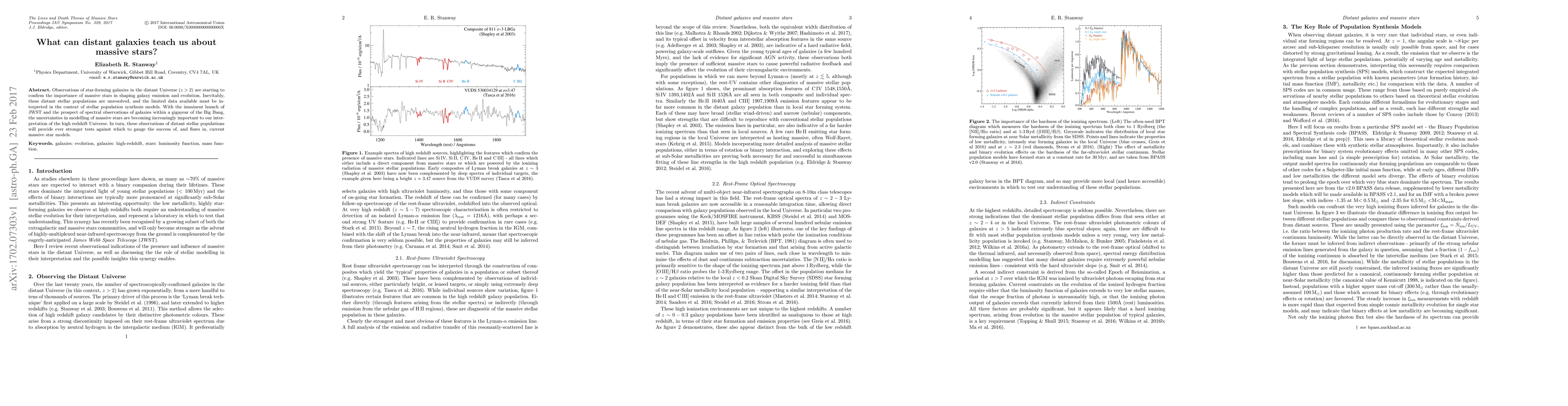Observations of star-forming galaxies in the distant Universe (z > 2) are starting to confirm the importance of massive stars in shaping galaxy emission and evolution. Inevitably, these distant stellar populations are unresolved, and the limited data available must be interpreted in the context of stellar population synthesis models. With the imminent launch of JWST and the prospect of spectral observations of galaxies within a gigayear of the Big Bang, the uncertainties in modelling of massive stars are becoming increasingly important to our interpretation of the high redshift Universe. In turn, these observations of distant stellar populations will provide ever stronger tests against which to gauge the success of, and flaws in, current massive star models.