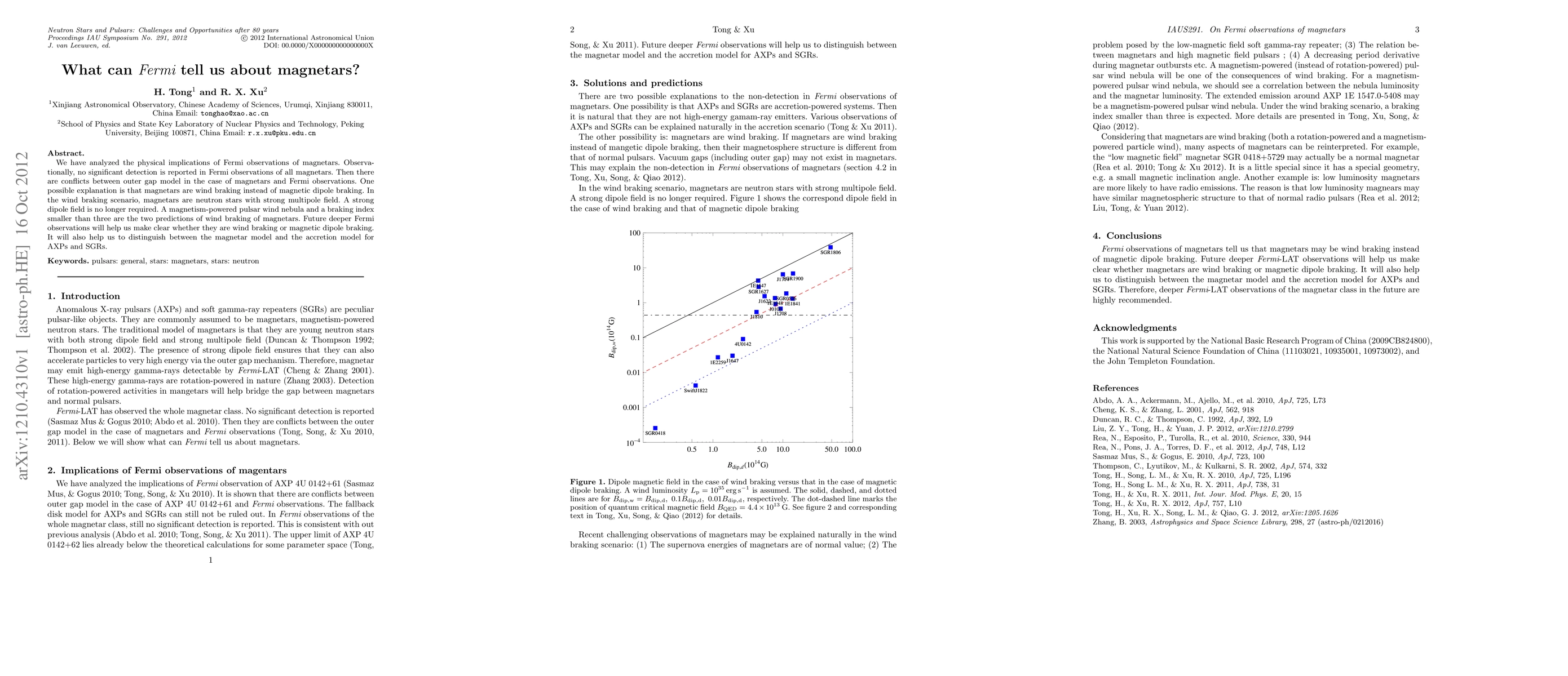 This paper analyzes Fermi observations of magnetars, finding no significant detections and conflicts with the outer gap model. It suggests that magnetars may instead undergo wind braking rather than magnetic dipole braking, predicting a magnetism-powered pulsar wind nebula and a braking index smaller than three. Future deeper Fermi observations are needed to clarify the braking mechanism and distinguish between magnetar and accretion models for AXPs and SGRs.