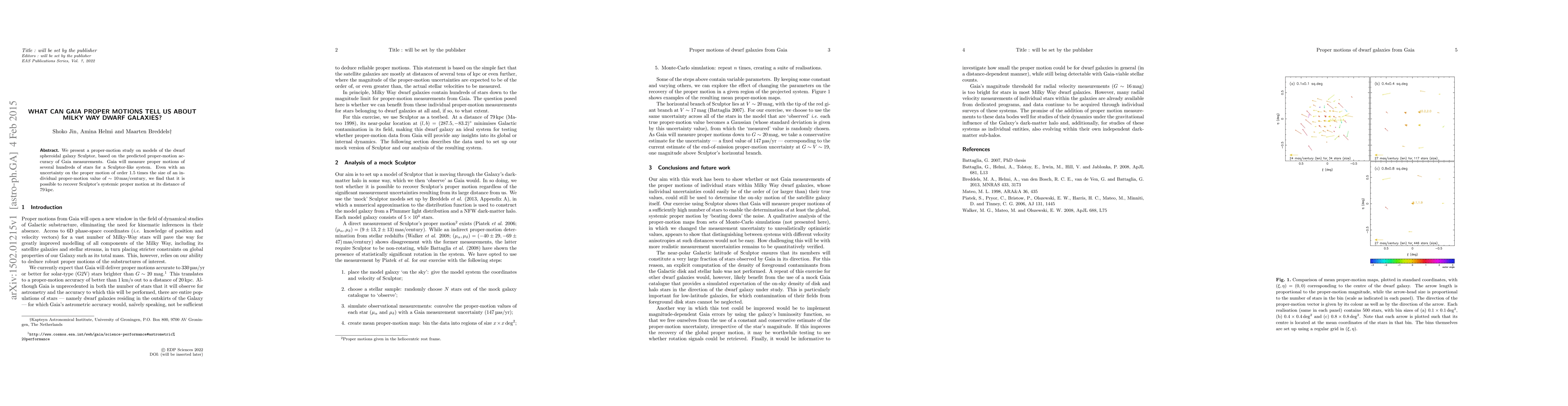 We present a proper-motion study on models of the dwarf spheroidal galaxy Sculptor, based on the predicted proper-motion accuracy of Gaia measurements. Gaia will measure proper motions of several hundreds of stars for a Sculptor-like system. Even with an uncertainty on the proper motion of order 1.5 times the size of an individual proper-motion value of ~10 mas/century, we find that it is possible to recover Sculptor's systemic proper motion at its distance of 79 kpc.