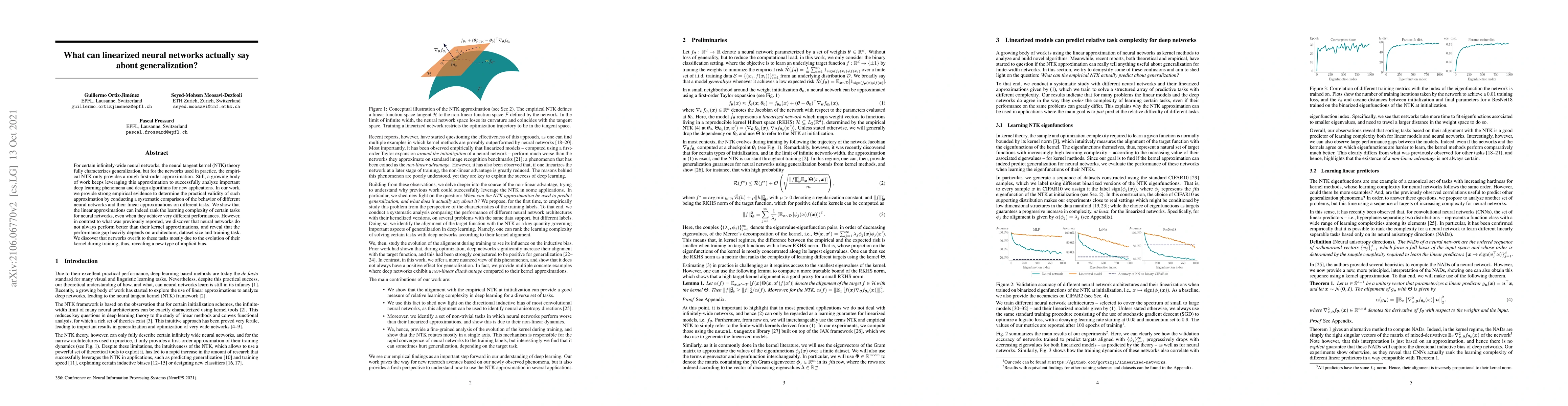 For certain infinitely-wide neural networks, the neural tangent kernel (NTK) theory fully characterizes generalization, but for the networks used in practice, the empirical NTK only provides a rough first-order approximation. Still, a growing body of work keeps leveraging this approximation to successfully analyze important deep learning phenomena and design algorithms for new applications. In our work, we provide strong empirical evidence to determine the practical validity of such approximation by conducting a systematic comparison of the behavior of different neural networks and their linear approximations on different tasks. We show that the linear approximations can indeed rank the learning complexity of certain tasks for neural networks, even when they achieve very different performances. However, in contrast to what was previously reported, we discover that neural networks do not always perform better than their kernel approximations, and reveal that the performance gap heavily depends on architecture, dataset size and training task. We discover that networks overfit to these tasks mostly due to the evolution of their kernel during training, thus, revealing a new type of implicit bias.