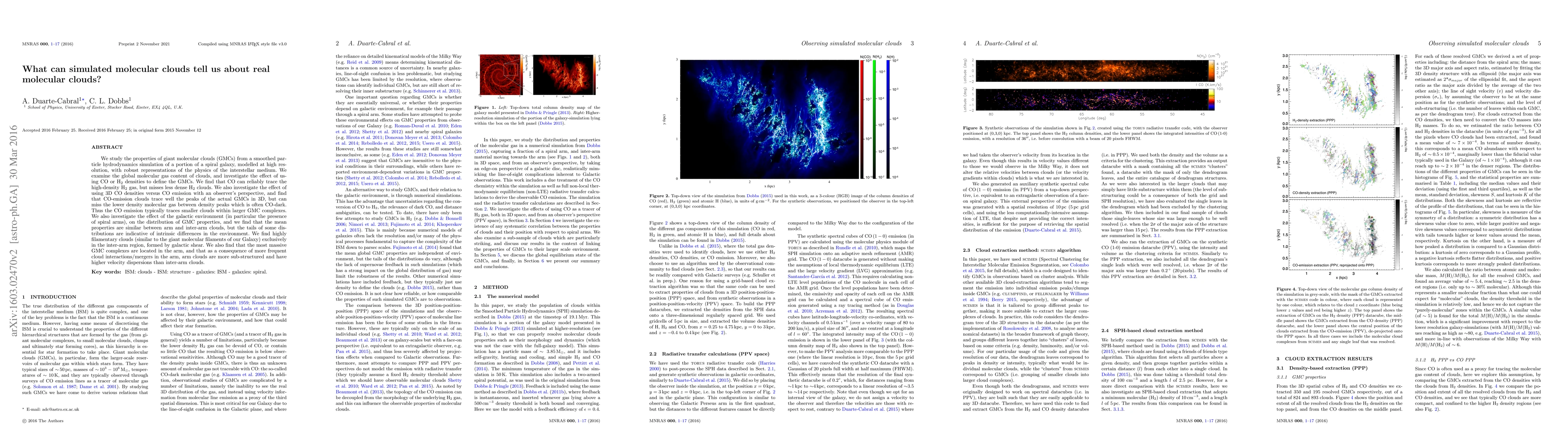 This study uses high-resolution simulations to compare properties of simulated giant molecular clouds (GMCs) with real ones, finding that CO emission traces high-density H2 gas but misses less dense regions. The research also reveals that GMCs in spiral arms are more sub-structured and have higher velocity dispersions due to frequent cloud interactions, while inter-arm regions host highly filamentary clouds formed by galactic shear.