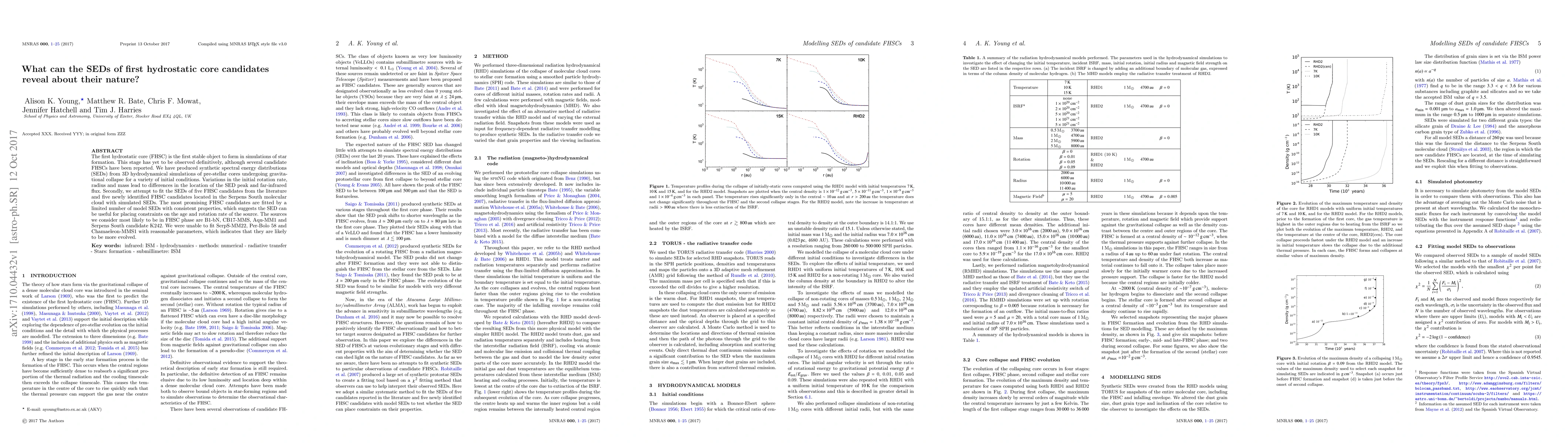 The first hydrostatic core (FHSC) is the first stable object to form in simulations of star formation. This stage has yet to be observed definitively, although several candidate FHSCs have been reported. We have produced synthetic spectral energy distributions (SEDs) from 3D hydrodynamical simulations of pre-stellar cores undergoing gravitational collapse for a variety of initial conditions. Variations in the initial rotation rate, radius and mass lead to differences in the location of the SED peak and far-infrared flux. Secondly, we attempt to fit the SEDs of five FHSC candidates from the literature and five newly identified FHSC candidates located in the Serpens South molecular cloud with simulated SEDs. The most promising FHSC candidates are fitted by a limited number of model SEDs with consistent properties, which suggests the SED can be useful for placing constraints on the age and rotation rate of the source. The sources we consider most likely to be in FHSC phase are B1-bN, CB17-MMS, Aqu-MM1 and Serpens South candidate K242. We were unable to fit SerpS-MM22, Per-Bolo 58 and Chamaeleon-MMS1 with reasonable parameters, which indicates that they are likely to be more evolved.