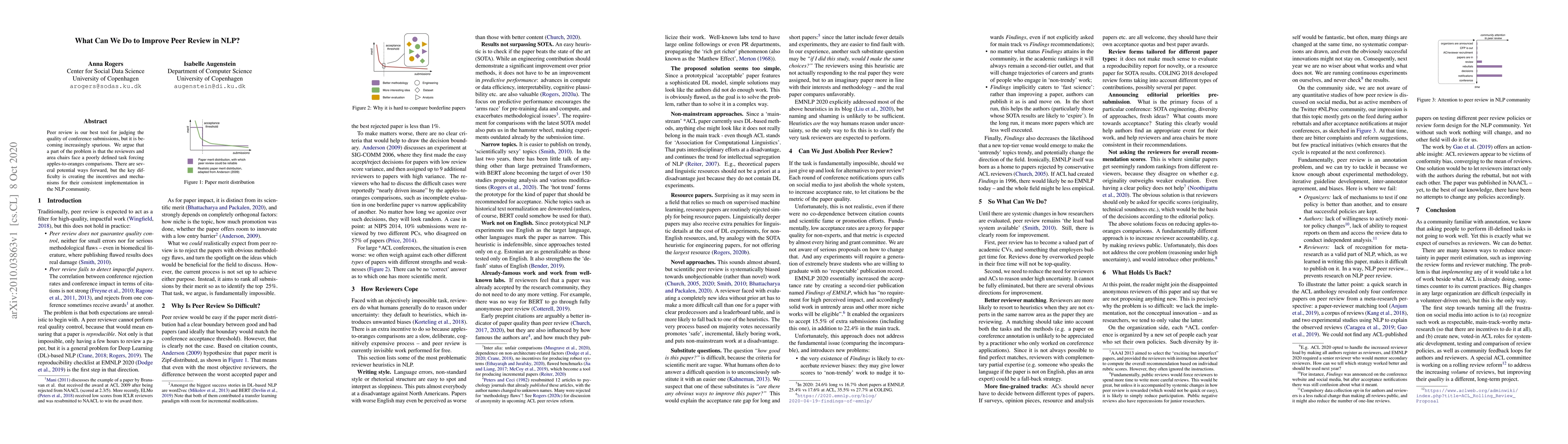 Peer review is our best tool for judging the quality of conference submissions, but it is becoming increasingly spurious. We argue that a part of the problem is that the reviewers and area chairs face a poorly defined task forcing apples-to-oranges comparisons. There are several potential ways forward, but the key difficulty is creating the incentives and mechanisms for their consistent implementation in the NLP community.