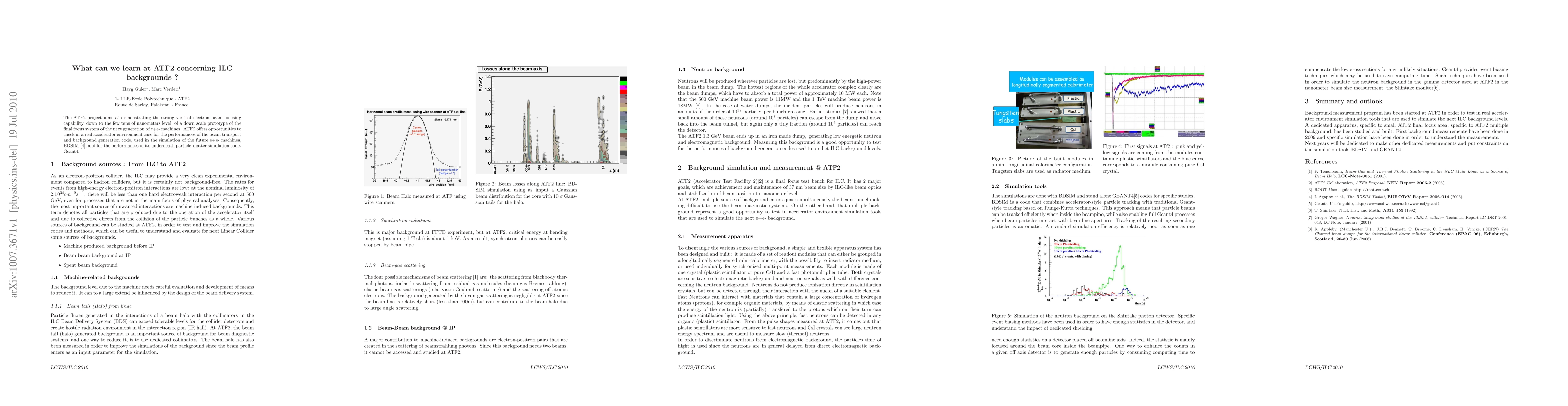 The ATF2 project tests the electron beam focusing capabilities of a prototype final focus system for next-generation e+e- machines, providing real-world validation for the beam transport and background generation simulation codes BDSIM and Geant4. This research aims to refine simulation models for future accelerators by evaluating their performance in a practical environment.