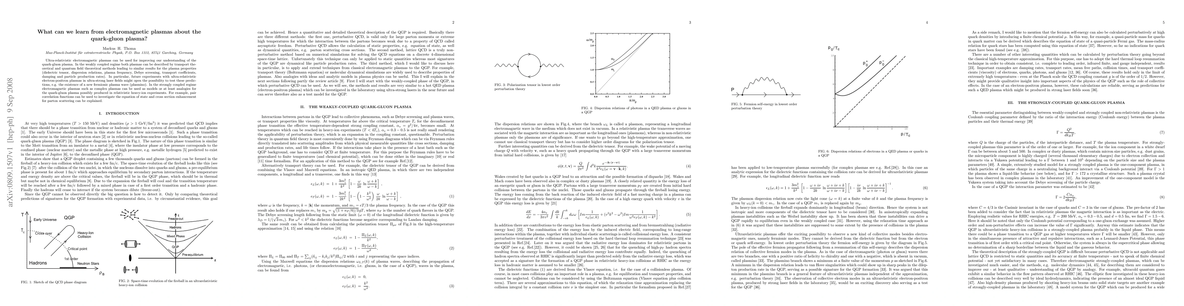 This paper explores how insights from ultra-relativistic electromagnetic plasmas can enhance our understanding of the quark-gluon plasma, particularly through transport theoretical and quantum field theoretical methods. It suggests that future experiments with electron-positron plasmas may provide new tests for these theoretical predictions.