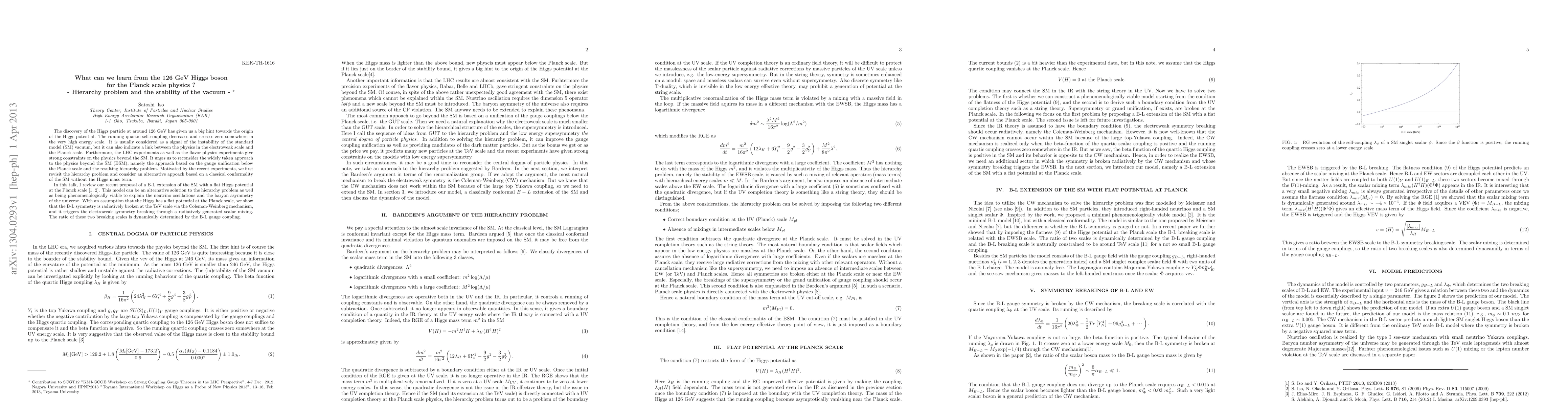 The 126 GeV Higgs boson suggests a potential link between the electroweak and Planck scales, indicating possible vacuum instability in the Standard Model. An alternative approach to the hierarchy problem proposes a B-L extended Standard Model with a flat Higgs potential at the Planck scale, which can resolve the hierarchy issue and explain phenomena like neutrino oscillations and baryon asymmetry.