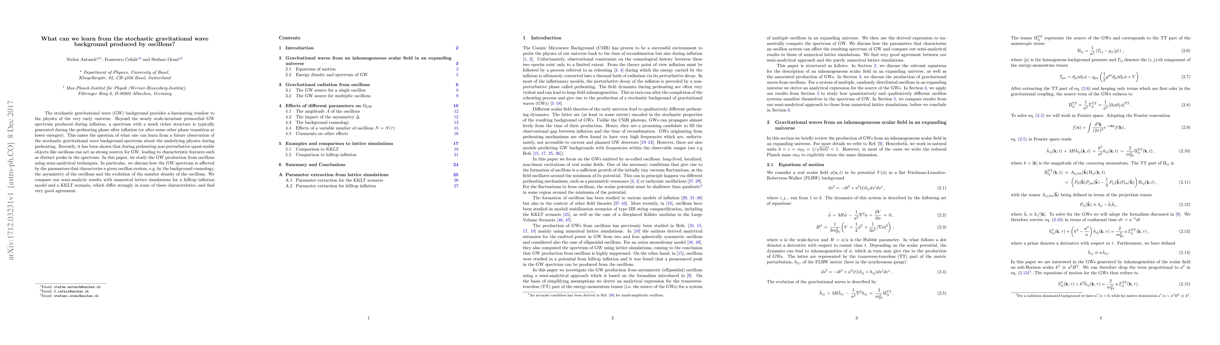 This paper investigates the stochastic gravitational wave background produced by oscillons during the preheating phase after inflation, using semi-analytical techniques and numerical simulations. It finds that oscillons can generate distinct peaks in the GW spectrum, providing insights into the underlying physics of the early universe.