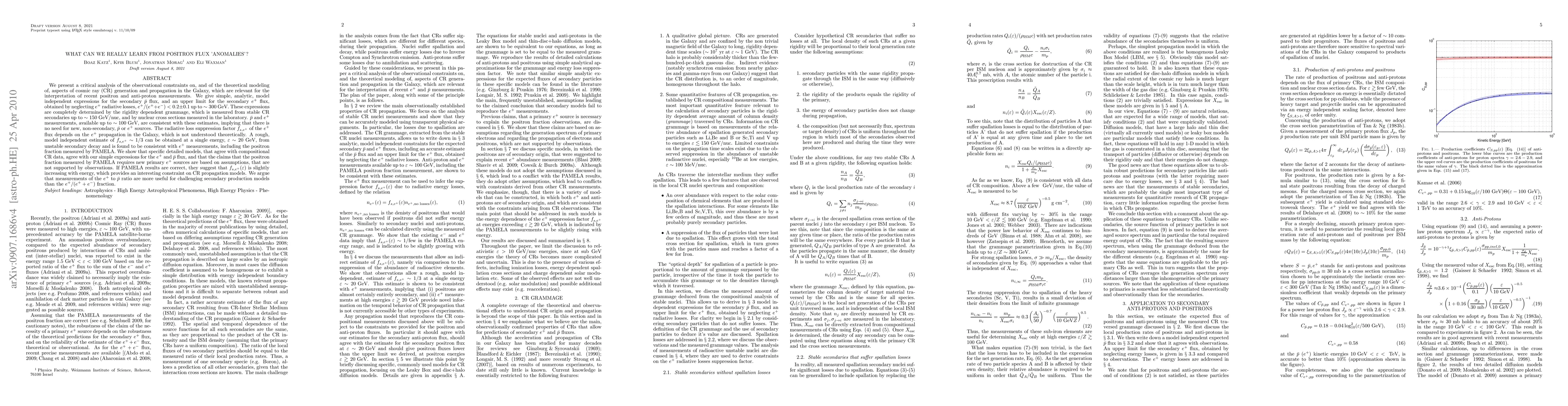 We present a critical analysis of the observational constraints on, and of the theoretical modeling of, aspects of cosmic ray (CR) generation and propagation in the Galaxy, which are relevant for the interpretation of recent positron and anti-proton measurements. We give simple, analytic, model independent expressions for the secondary pbar flux, and an upper limit for the secondary e+ flux, obtained by neglecting e+ radiative losses, e+/(e+ + e-)<0.2\pm0.1 up to ~300 GeV. These expressions are completely determined by the rigidity dependent grammage, which is measured from stable CR secondaries up to ~150 GeV/nuc, and by nuclear cross sections measured in the laboratory. pbar and e+ measurements, available up to ~100 GeV, are consistent with these estimates, implying that there is no need for new, non-secondary, pbar or e+ sources. The radiative loss suppression factor f_{s,e+} of the e+ flux depends on the e+ propagation in the Galaxy, which is not understood theoretically. A rough, model independent estimate of f_{s,e+} 1/3 can be obtained at a single energy, E\sim20 GeV, from unstable secondary decay and is found to be consistent with e+ measurements, including the positron fraction measured by PAMELA. We show that specific detailed models, that agree with compositional CR data, agree with our simple expressions for the e+ and pbar flux, and that the claims that the positron fraction measured by PAMELA requires new primary e+ sources are based on assumptions, that are not supported by observations. If PAMELA results are correct, they suggest that f_{s,e+} is slightly increasing with energy, which provides an interesting constraint on CR propagation models. We argue that measurements of the e+ to pbar ratio are more useful for challenging secondary production models than the positron fraction.