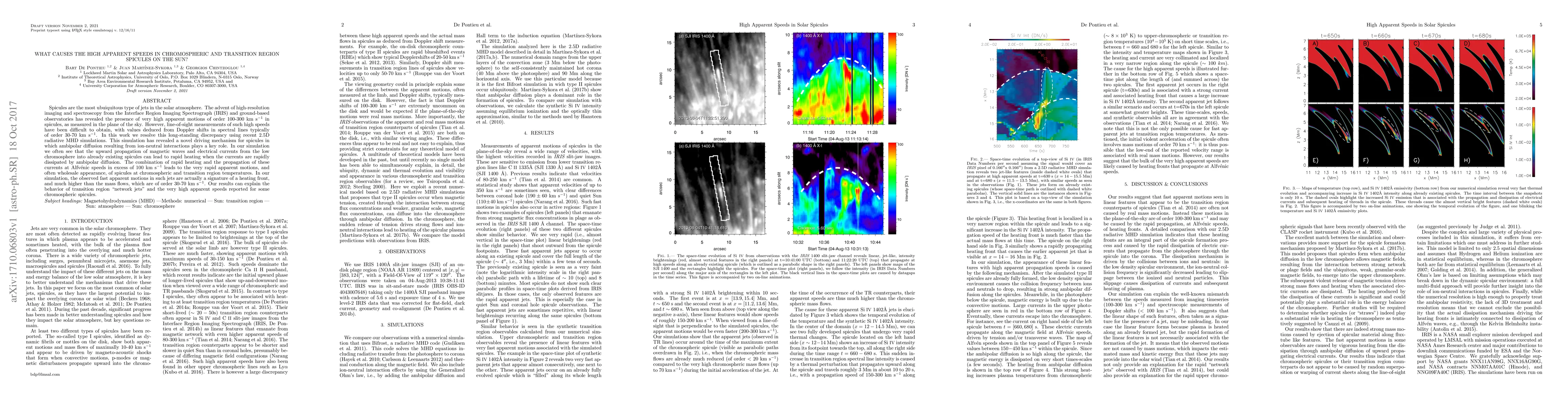 Research reveals that high apparent speeds in solar spicules are caused by heating fronts due to ambipolar diffusion, explaining the discrepancy between line-of-sight measurements and observed speeds of up to 300 km/s.