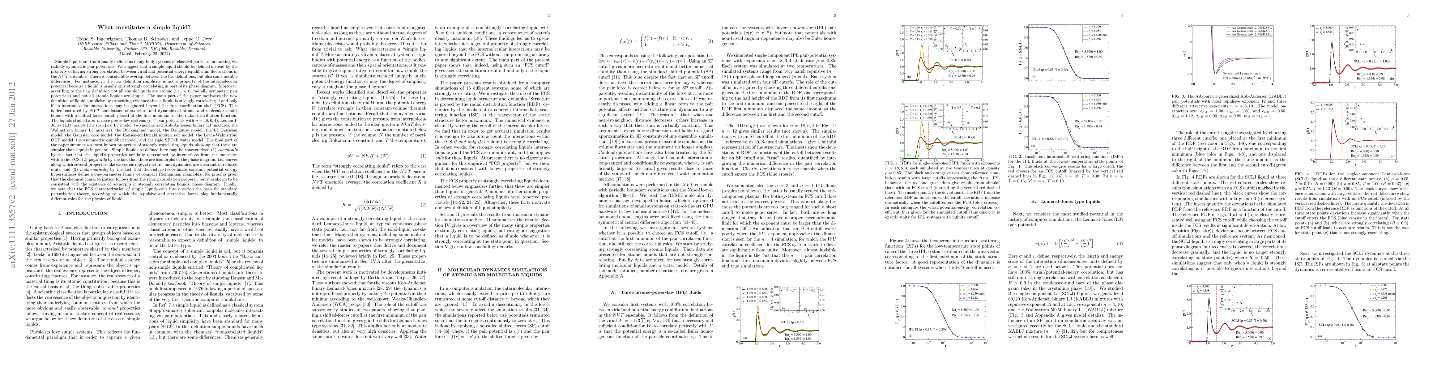 Simple liquids are traditionally defined as many-body systems of classical particles interacting via radially symmetric pair potentials. We suggest that a simple liquid should be defined instead by the property of having strong correlation between virial and potential energy equilibrium fluctuations in the NVT ensemble. There is considerable overlap between the two definitions, but also some notable differences. For instance, in the new definition simplicity is not a property of the intermolecular potential only because a liquid is usually only strongly correlating in part of its phase diagram. Moreover, according to the new definition not all simple liquids are atomic (i.e., with radially symmetric pair potentials) and not all atomic liquids are simple. The main part of the paper motivates the new definition of liquid simplicity by presenting evidence that a liquid is strongly correlating if and only if its intermolecular interactions may be ignored beyond the first coordination shell (FCS). This is demonstrated by NVT simulations of structure and dynamics of 15 atomic and molecular model liquids with a shifted-forces cutoff placed at the first minimum of the radial distribution function. No proof is given that the chemical characterization follows from the strong correlation property, but it is shown to be consistent with the existence of isomorphs in strongly correlating liquids' phase diagram. Finally, we note that the FCS characterization of simple liquids calls into question the basis for standard perturbation theory, according to which the repulsive and attractive forces play fundamentally different roles for the physics of liquids.