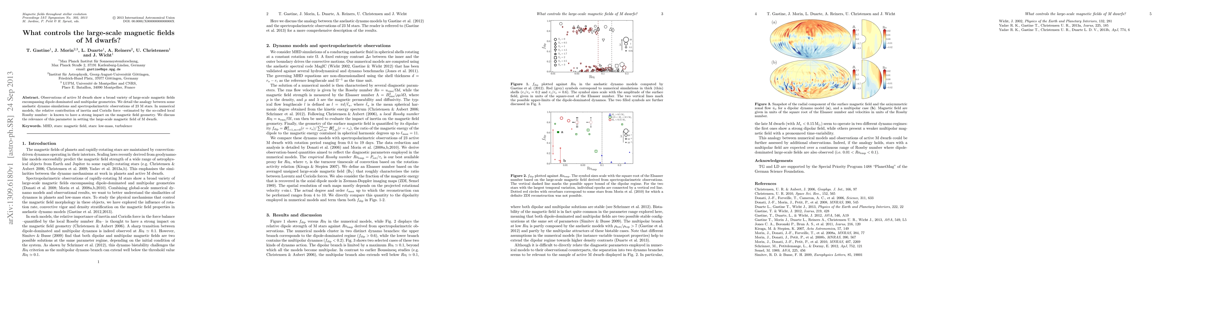 Observations of active M dwarfs show a broad variety of large-scale magnetic fields encompassing dipole-dominated and multipolar geometries. We detail the analogy between some anelastic dynamo simulations and spectropolarimetric observations of 23 M stars. In numerical models, the relative contribution of inertia and Coriolis force in the global force balance -estimated by the so-called local Rossby number- is known to have a strong impact on the magnetic field geometry. We discuss the relevance of this parameter in setting the large-scale magnetic field of M dwarfs.