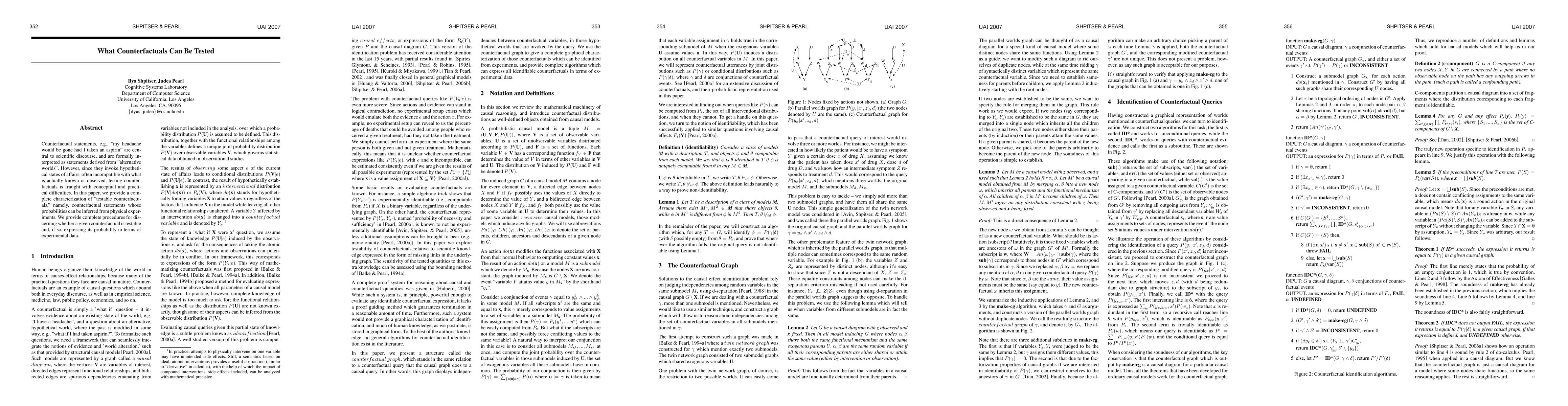 This paper characterizes "testable counterfactuals" that can be inferred from physical experiments, providing procedures for determining their testability and expressing their probabilities based on empirical data. The focus is on resolving conceptual and practical difficulties inherent in testing counterfactuals that describe hypothetical scenarios.