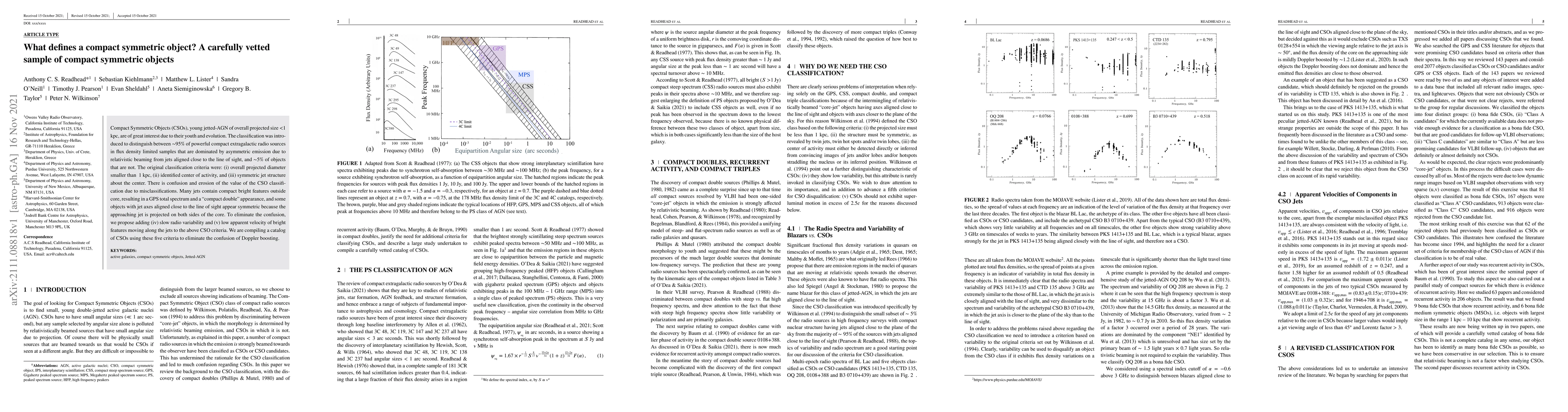Compact Symmetric Objects (CSOs), young jetted-AGN of overall projected size <1 kpc, are of great interest due to their youth and evolution. The classification was introduced to distinguish between ~95% of powerful compact extragalactic radio sources in flux density limited samples that are dominated by asymmetric emission due to relativistic beaming from jets aligned close to the line of sight, and ~5% of objects that are not. The original classification criteria were: (i) overall projected diameter smaller than ~1 kpc, (ii) identified center of activity, and (iii) symmetric jet structure about the center. There is confusion and erosion of the value of the CSO classification due to misclassifications. Many jets contain compact bright features outside core, resulting in a GPS total spectrum and a "compact double" appearance, and some objects with jet axes aligned close to the line of sight appear symmetric because the approaching jet is projected on both sides of the core. To eliminate the confusion, we propose adding (iv) slow radio variability and (v) low apparent velocity of bright features moving along the jets to the above CSO criteria. We are compiling a catalog of CSOs using these five criteria to eliminate the confusion of Doppler boosting.