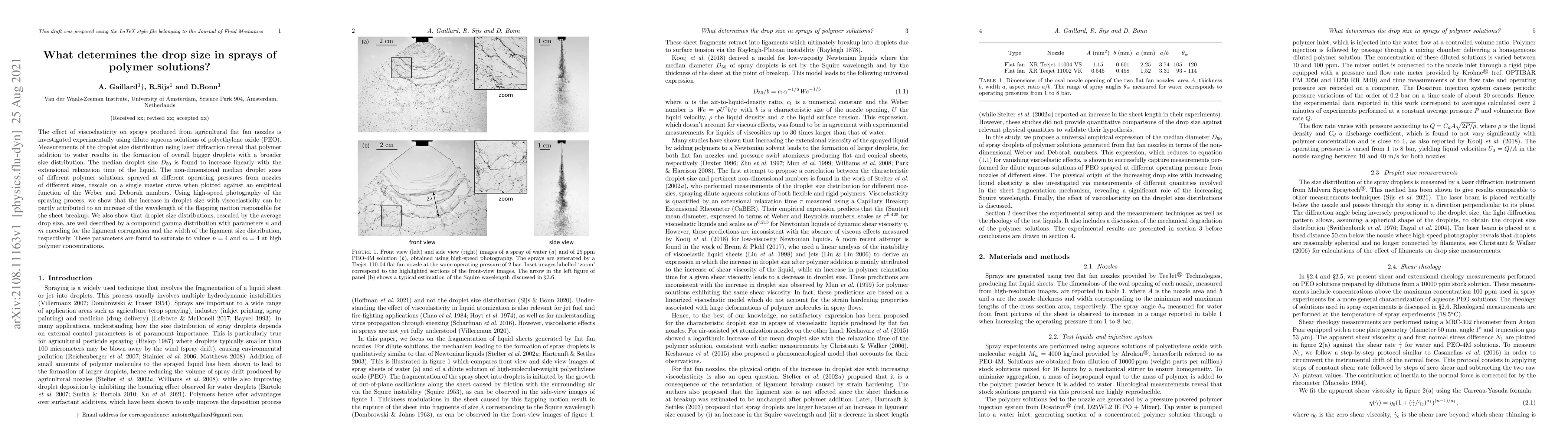 The addition of polymer to water increases droplet size in sprays from nozzles, with median droplet sizes linked to the relaxation time of the liquid.