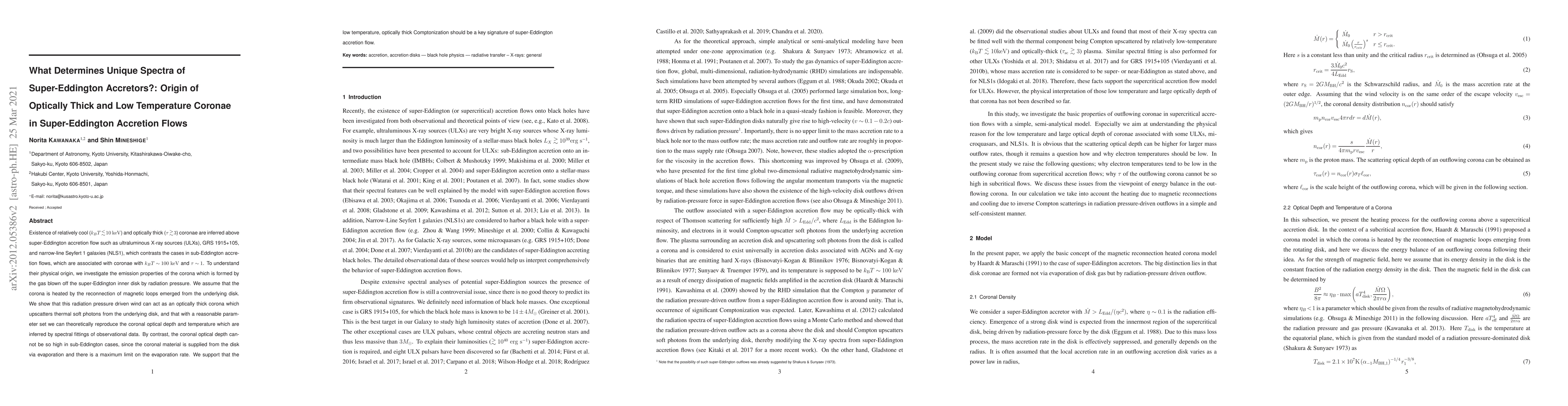 This paper investigates the unique spectra of super-Eddington accretors, finding that optically thick and low-temperature coronae are formed due to radiation pressure-driven winds. These coronae, which upscatter soft photons, contrast with the higher-temperature, lower optical depth coronae in sub-Eddington flows, suggesting low-temperature Comptonization as a key signature for super-Eddington accretion.