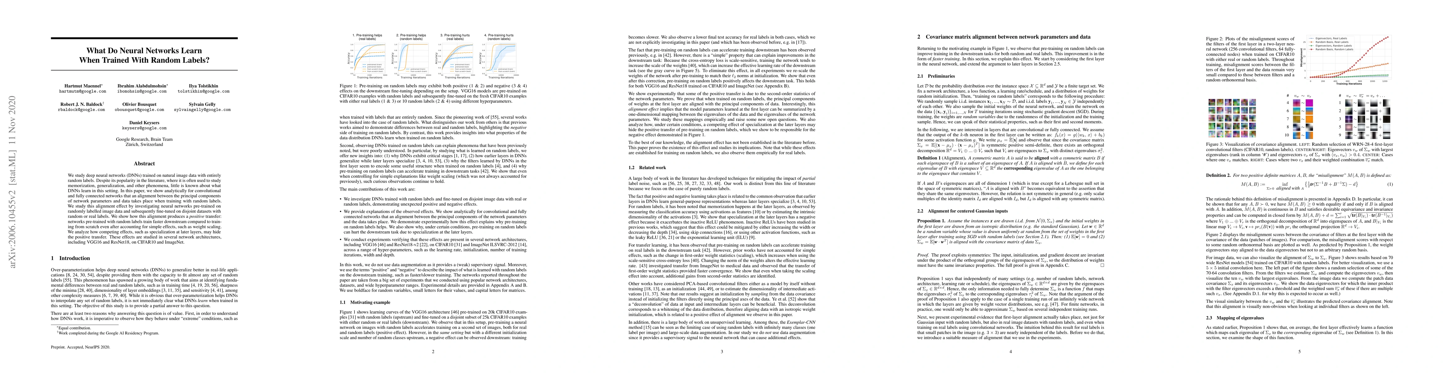 The research analyzes deep neural networks (DNNs) trained on natural image data with entirely random labels. It shows analytically for convolutional and fully connected networks that an alignment between the principal components of network parameters and data occurs when training with random labels. This alignment effect is studied by investigating networks pre-trained on randomly labeled image data and subsequently fine-tuned on disjoint datasets with random or real labels.