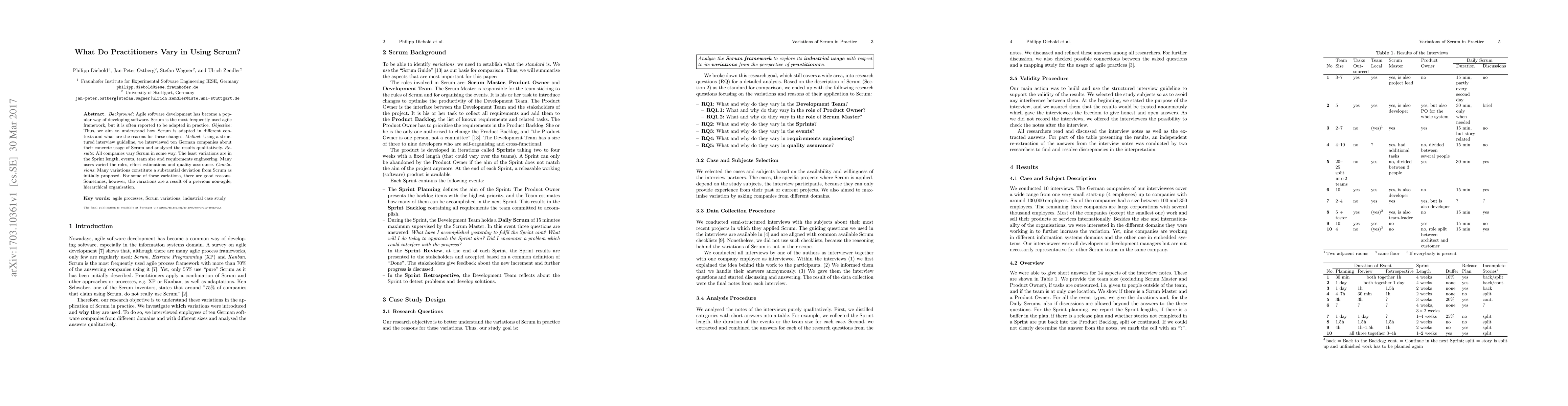 The research used structured interviews with ten German companies to understand how Scrum is adapted in different contexts and reasons for these changes, analyzed qualitatively.