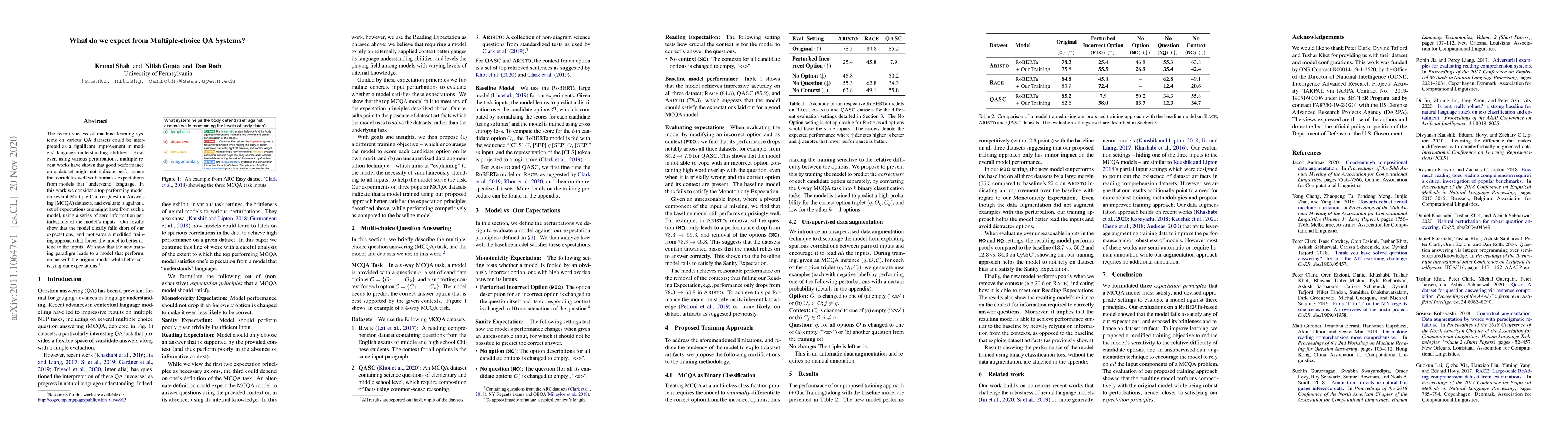 The paper examines a high-performing Multiple Choice QA model, revealing it doesn't meet expectations for language understanding through input perturbations. A modified training approach is proposed, resulting in a model that maintains performance while better aligning with human expectations for language comprehension.