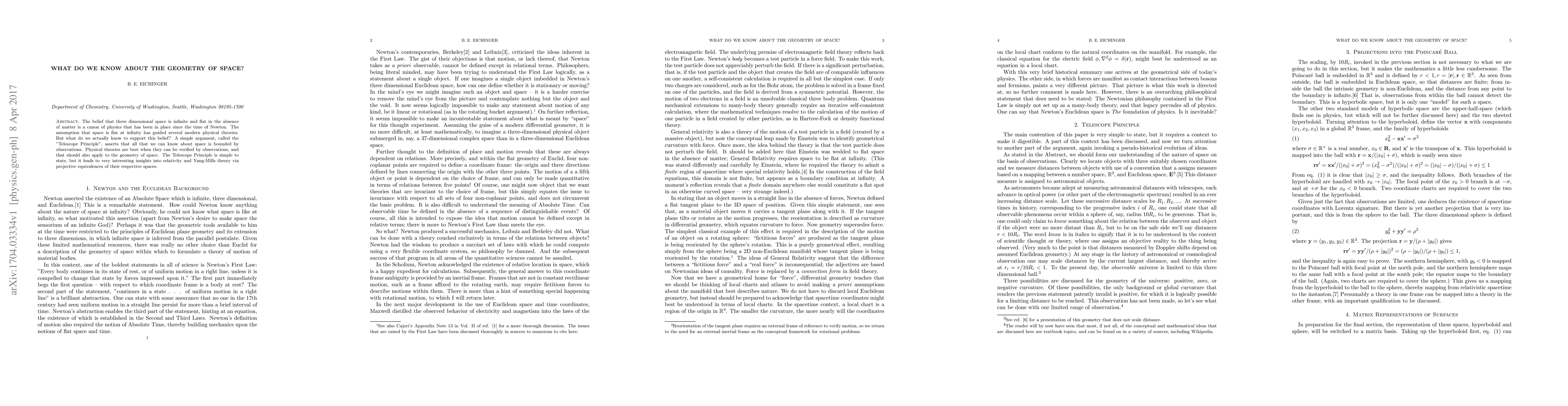 The belief that three dimensional space is infinite and flat in the absence of matter is a canon of physics that has been in place since the time of Newton. The assumption that space is flat at infinity has guided several modern physical theories. But what do we actually know to support this belief? A simple argument, called the "Telescope Principle", asserts that all that we can know about space is bounded by observations. Physical theories are best when they can be verified by observations, and that should also apply to the geometry of space. The Telescope Principle is simple to state, but it leads to very interesting insights into relativity and Yang-Mills theory via projective equivalences of their respective spaces.