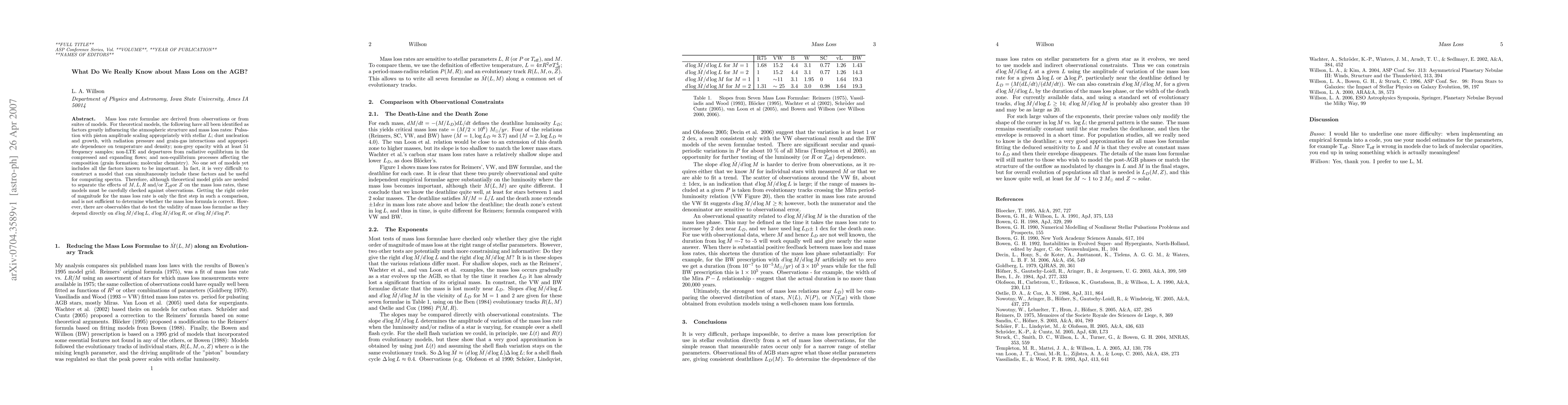 Mass loss rate formulae are derived from observations or from suites of models. For theoretical models, the following have all been identified as factors greatly influencing the atmospheric structure and mass loss rates: Pulsation with piston amplitude scaling appropriately with stellar L; dust nucleation and growth, with radiation pressure and grain-gas interactions and appropriate dependence on temperature and density; non-grey opacity with at least 51 frequency samples; non-LTE and departures from radiative equilibrium in the compressed and expanding flows; and non-equilibrium processes affecting the composition (grain formation; molecular chemistry). No one set of models yet includes all the factors known to be important. In fact, it is very difficult to construct a model that can simultaneously include these factors and be useful for computing spectra. Therefore, although theoretical model grids are needed to separate the effects of M,L,R and/or $T_{\mathrm{eff}}$ or Z on the mass loss rates, these models must be carefully checked against observations. Getting the right order of magnitude for the mass loss rate is only the first step in such a comparison, and is not sufficient to determine whether the mass loss formula is correct. However, there are observables that do test the validity of mass loss formulae as they depend directly on $d\log \dot M/d\log L$, $d\log \dot M/d\log R$, or $d\log \dot M/d\log P$.