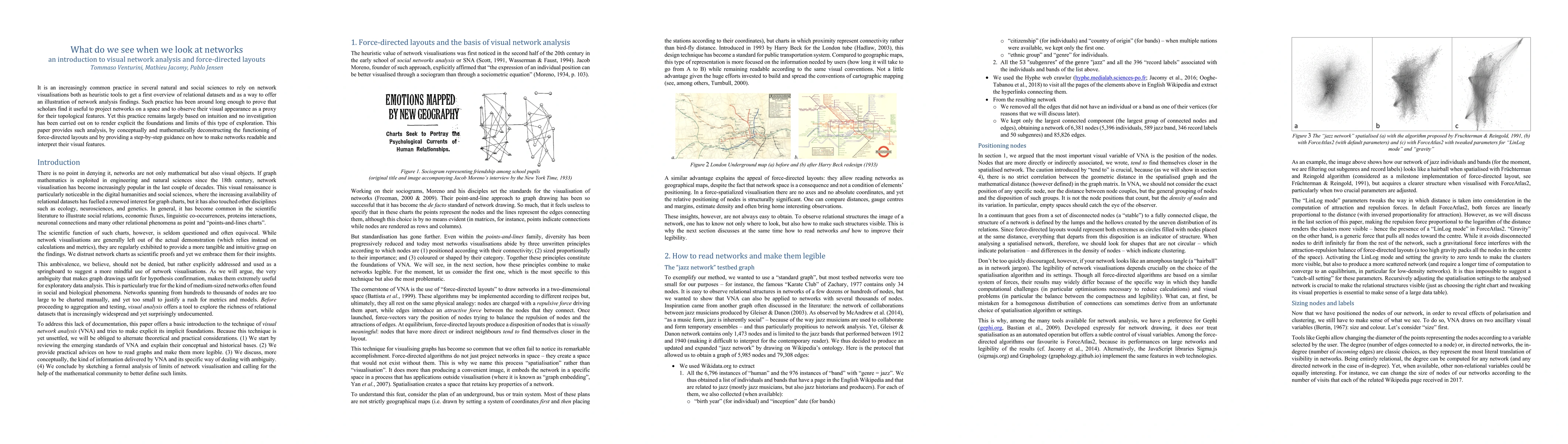 It is an increasingly common practice in several natural and social sciences to rely on network visualisations both as heuristic tools to get a first overview of relational datasets and as a way to offer an illustration of network analysis findings. Such practice has been around long enough to prove that scholars find it useful to project networks on a space and to observe their visual appearance as a proxy for their topological features. Yet this practice remains largely based on intuition and no investigation has been carried out on to render explicit the foundations and limits of this type of exploration. This paper provides such analysis, by conceptually and mathematically deconstructing the functioning of force-directed layouts and by providing a step-by-step guidance on how to make networks readable and interpret their visual features.