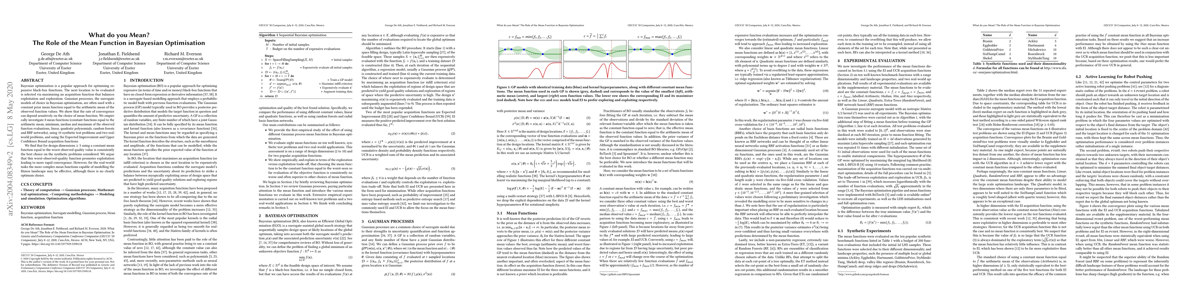 Bayesian optimisation is a popular approach for optimising expensive black-box functions. The next location to be evaluated is selected via maximising an acquisition function that balances exploitation and exploration. Gaussian processes, the surrogate models of choice in Bayesian optimisation, are often used with a constant prior mean function equal to the arithmetic mean of the observed function values. We show that the rate of convergence can depend sensitively on the choice of mean function. We empirically investigate 8 mean functions (constant functions equal to the arithmetic mean, minimum, median and maximum of the observed function evaluations, linear, quadratic polynomials, random forests and RBF networks), using 10 synthetic test problems and two real-world problems, and using the Expected Improvement and Upper Confidence Bound acquisition functions. We find that for design dimensions $\ge5$ using a constant mean function equal to the worst observed quality value is consistently the best choice on the synthetic problems considered. We argue that this worst-observed-quality function promotes exploitation leading to more rapid convergence. However, for the real-world tasks the more complex mean functions capable of modelling the fitness landscape may be effective, although there is no clearly optimum choice.