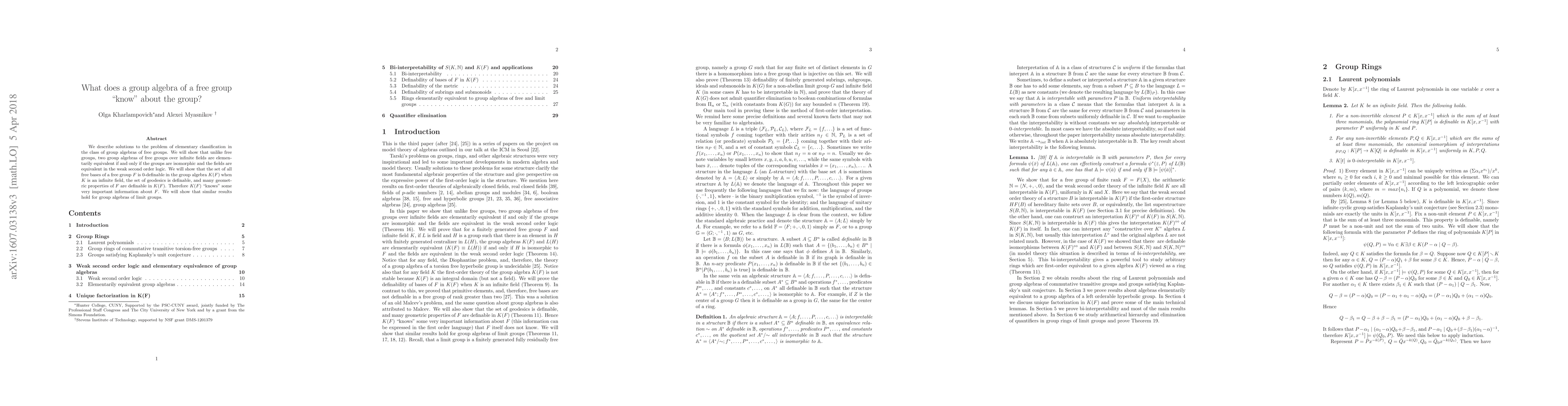 This paper explores the elementary classification of group algebras of free groups, demonstrating that their equivalence depends on both group isomorphism and field equivalence. It shows that the group algebra of a free group encodes significant geometric properties of the group, indicating that it retains substantial information about the underlying group structure.