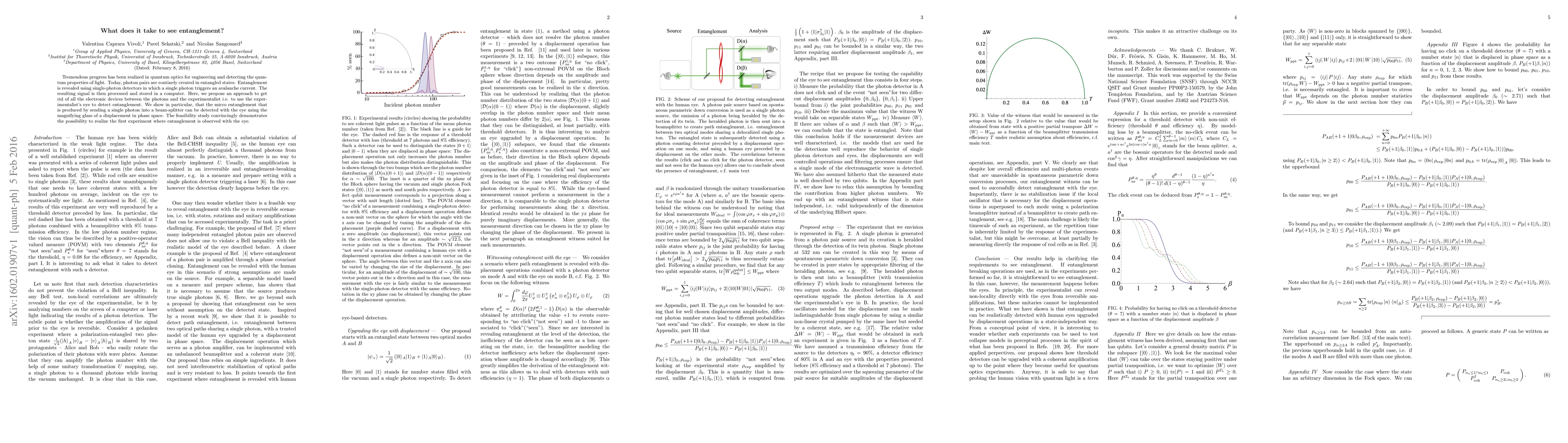 Tremendous progress has been realized in quantum optics for engineering and detecting the quantum properties of light. Today, photon pairs are routinely created in entangled states. Entanglement is revealed using single-photon detectors in which a single photon triggers an avalanche current. The resulting signal is then processed and stored in a computer. Here, we propose an approach to get rid of all the electronic devices between the photons and the experimentalist i.e. to use the experimentalist's eye to detect entanglement. We show in particular, that the micro entanglement that is produced by sending a single photon into a beam-splitter can be detected with the eye using the magnifying glass of a displacement in phase space. The feasibility study convincingly demonstrates the possibility to realize the first experiment where entanglement is observed with the eye.