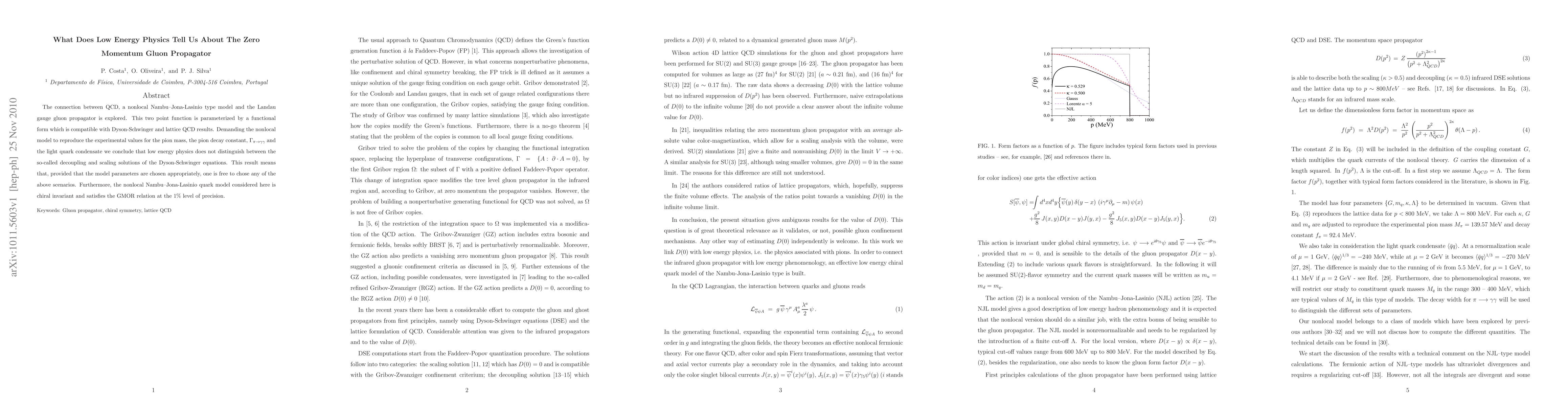The connection between QCD, a nonlocal Nambu--Jona-Lasinio type model and the Landau gauge gluon propagator is explored. This two point function is parameterized by a functional form which is compatible with Dyson-Schwinger and lattice QCD results. Demanding the nonlocal model to reproduce the experimental values for the pion mass, the pion decay constant, $\Gamma_{\pi \rightarrow \gamma\gamma}$ and the light quark condensate we conclude that low energy physics does not distinguish between the so-called decoupling and scaling solutions of the Dyson-Schwinger equations. This result means that, provided that the model parameters are chosen appropriately, one is free to chose any of the above scenarios. Furthermore, the nonlocal Nambu--Jona-Lasinio quark model considered here is chiral invariant and satisfies the GMOR relation at the 1% level of precision.