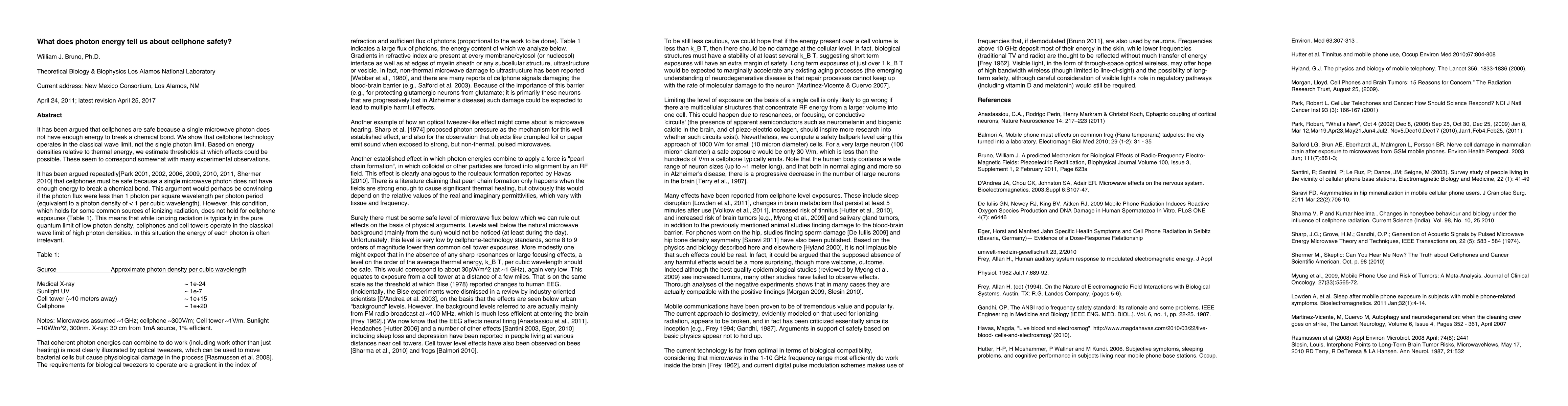 It has been argued that cellphones are safe because a single microwave photon does not have enough energy to break a chemical bond. We show that cellphone technology operates in the classical wave limit, not the single photon limit. Based on energy densities relative to thermal energy, we estimate thresholds at which effects might be expected. These seem to correspond somewhat with many experimental observations. Revised with appendix responding to critique published by B. Leikind.