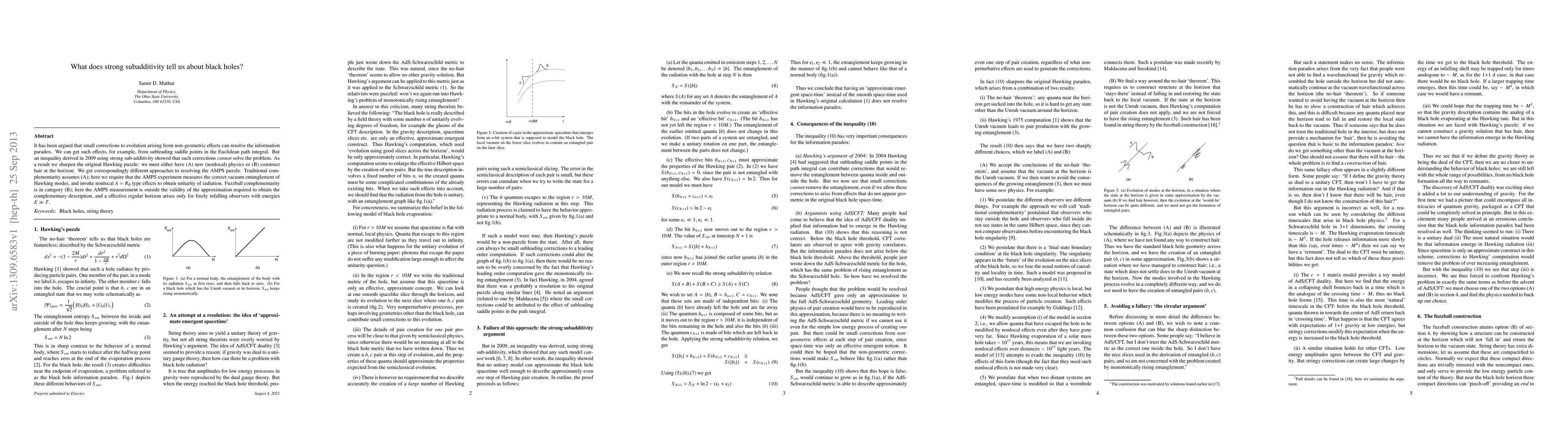 It has been argued that small corrections to evolution arising from non-geometric effects can resolve the information paradox. We can get such effects, for example, from subleading saddle points in the Euclidean path integral. But an inequality derived in 2009 using strong sub-additivity showed that such corrections {\it cannot} solve the problem. As a result we sharpen the original Hawking puzzle: we must either have (A) new (nonlocal) physics or (B) construct hair at the horizon. We get correspondingly different approaches to resolving the AMPS puzzle. Traditional complementarity assumes (A); here we require that the AMPS experiment measures the correct vacuum entanglement of Hawking modes, and invoke nonlocal $A=R_B$ type effects to obtain unitarity of radiation. Fuzzball complementarity is in category (B); here the AMPS measurement is outside the validity of the approximation required to obtain the complementary description, and a effective regular horizon arises only for freely infalling observers with energies $E\gg T$.