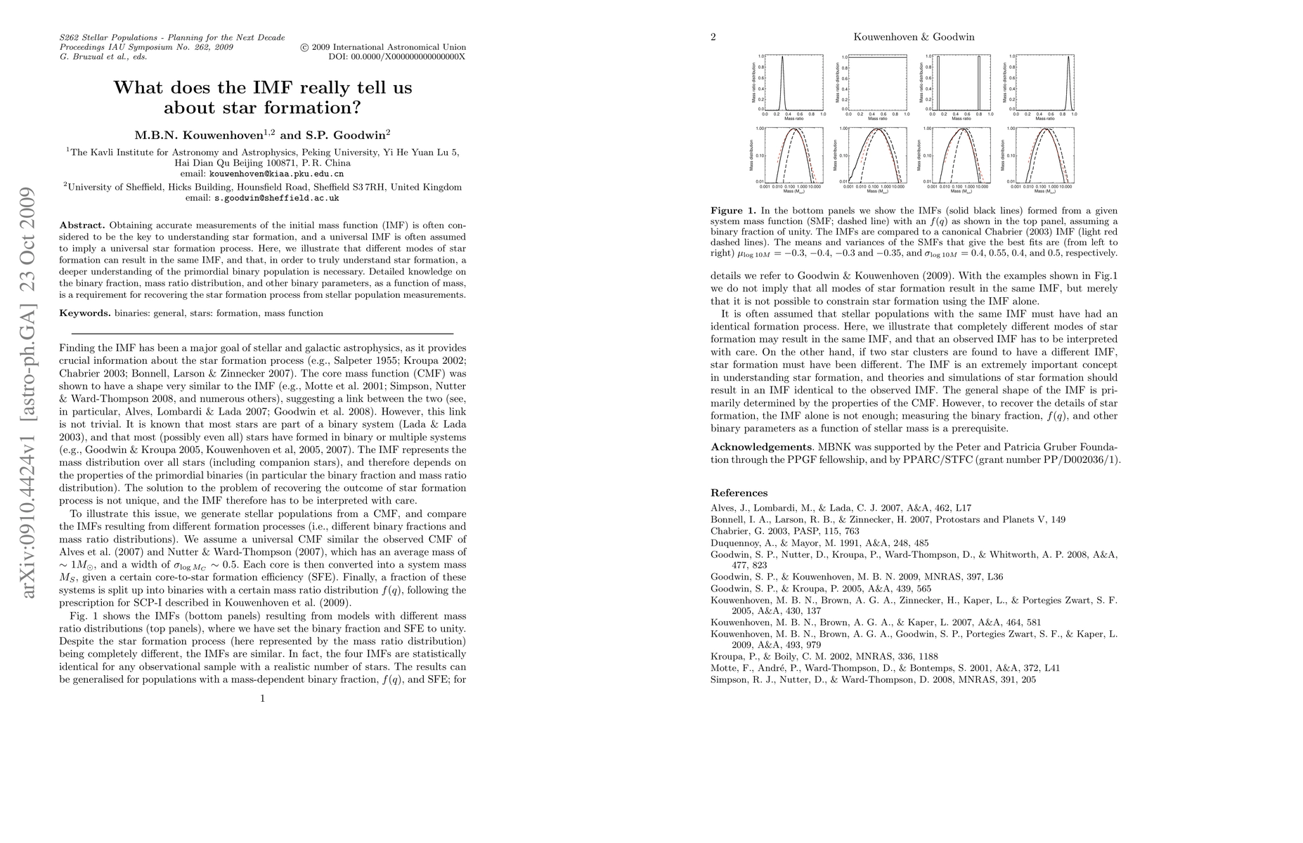 Obtaining accurate measurements of the initial mass function (IMF) is often considered to be the key to understanding star formation, and a universal IMF is often assumed to imply a universal star formation process. Here, we illustrate that different modes of star formation can result in the same IMF, and that, in order to truly understand star formation, a deeper understanding of the primordial binary population is necessary. Detailed knowledge on the binary fraction, mass ratio distribution, and other binary parameters, as a function of mass, is a requirement for recovering the star formation process from stellar population measurements.